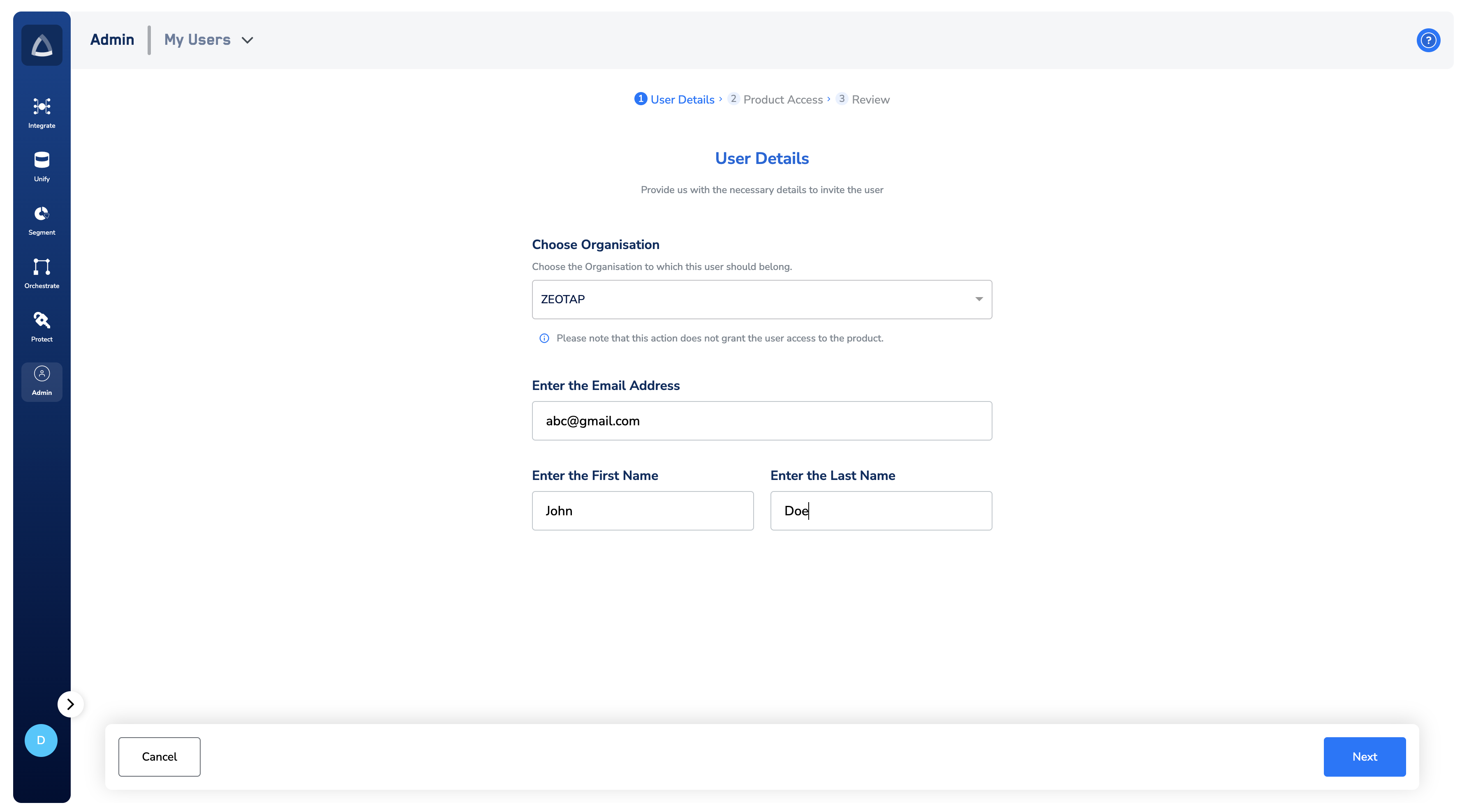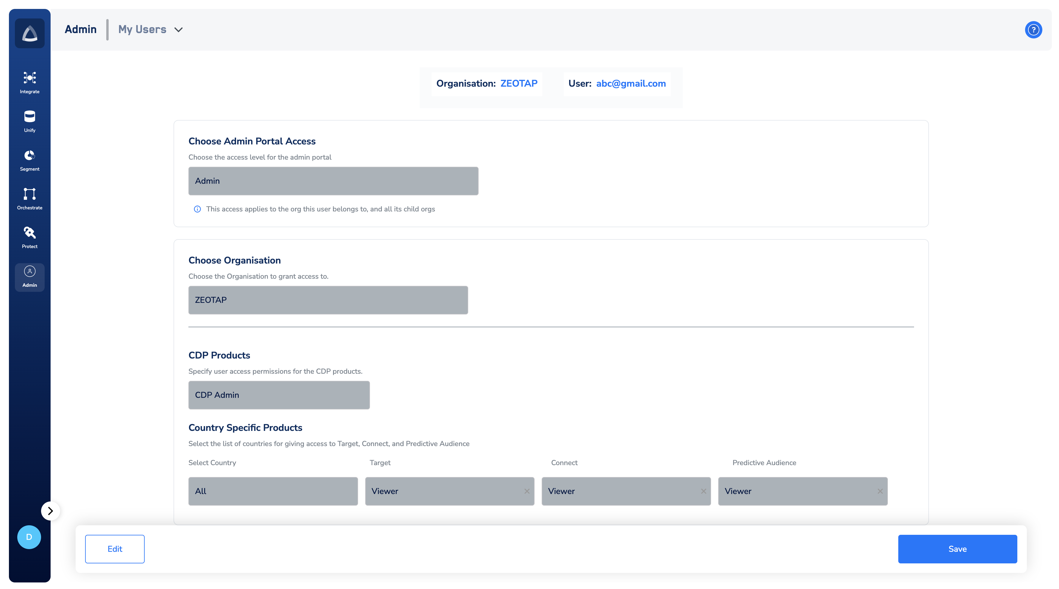 - CDP Products – Choose the appropriate role for the user for the CDP products.
