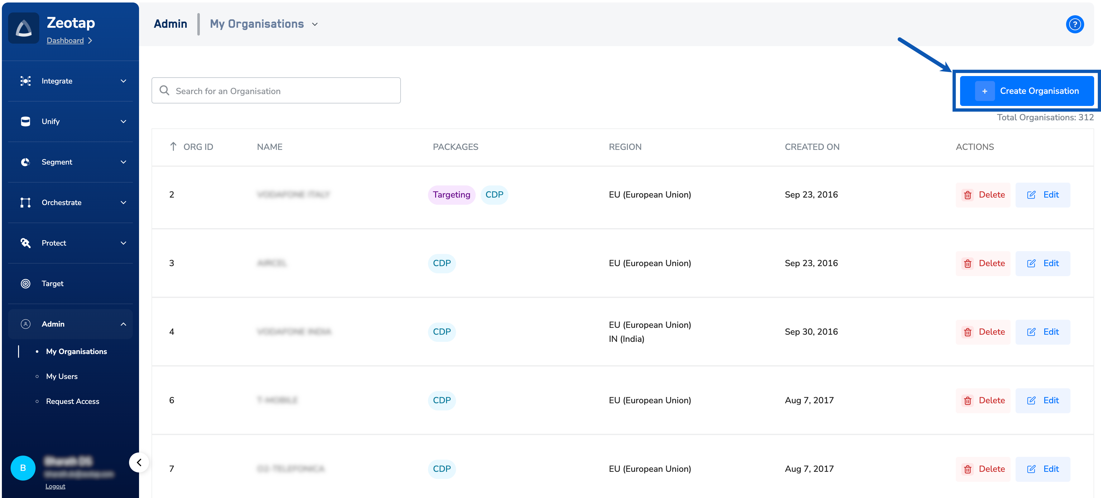 Select the Parent Organisation. Every organisation must have a parent organisation. With the parent-child relationship not defined, Zeotap is chosen as the parent organisation. For more information about the parent-child organisation relationship, refer here.