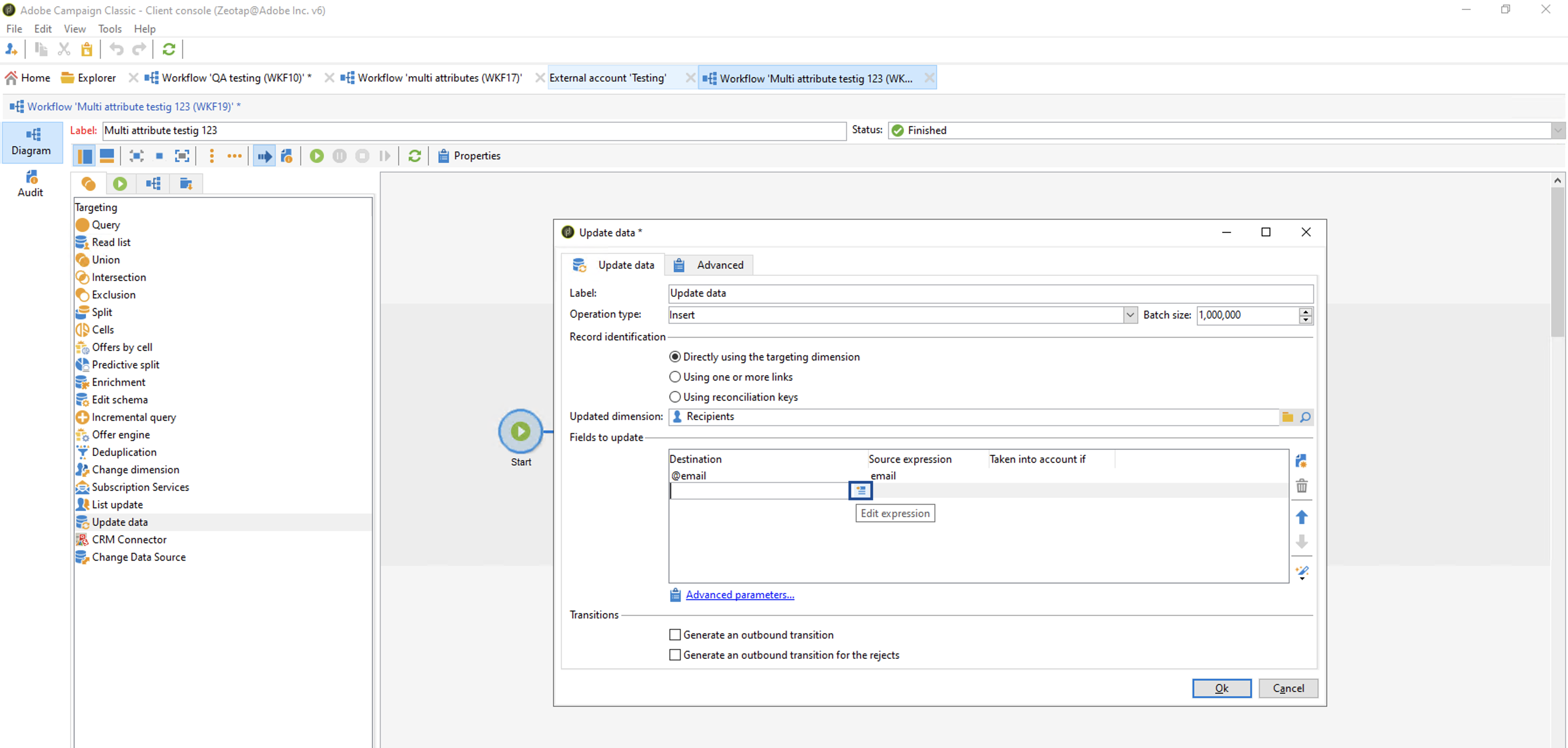 a. In the new row added, perform the following steps to map email addresses:i. Click Edit expression under Destination (LHS of the row).
