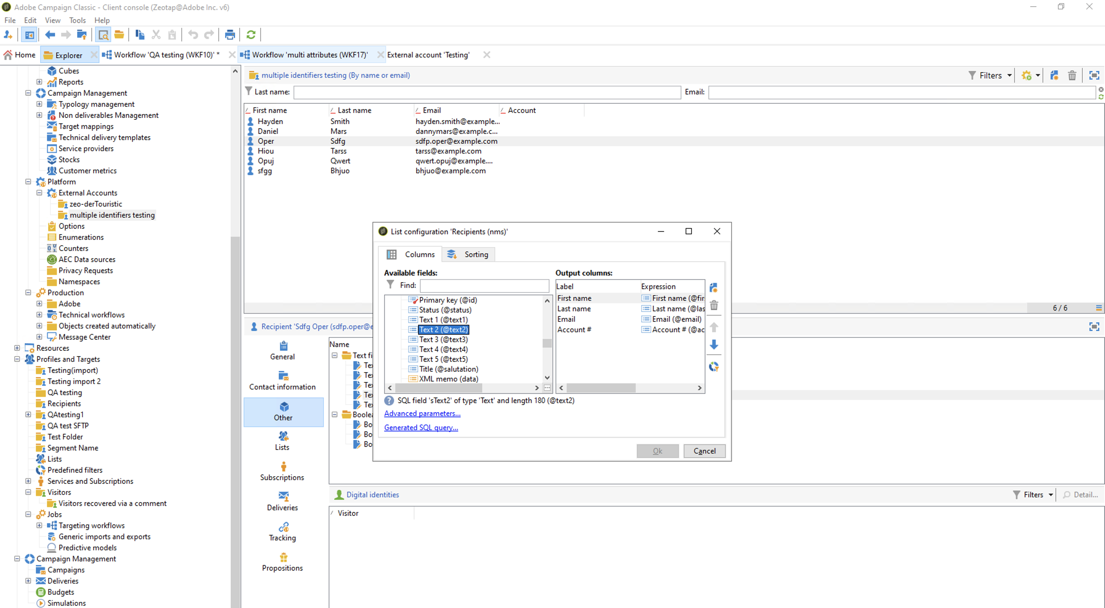 Perform the following steps to view the pushed Audiences (segments) on the Adobe Campaign platform:In the following List Configuration window that appears, choose the mapped text field to be displayed in the UI and click OK.