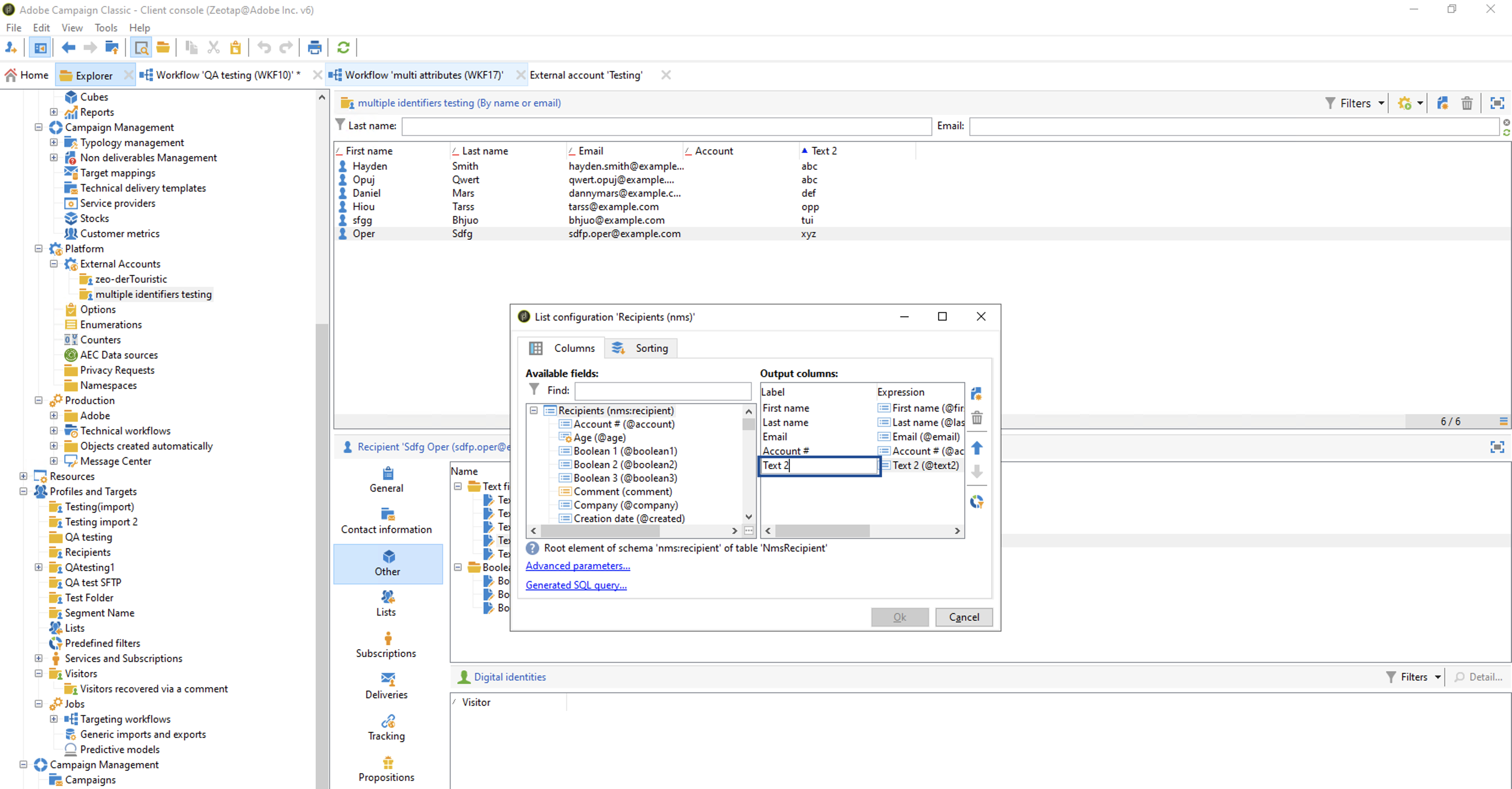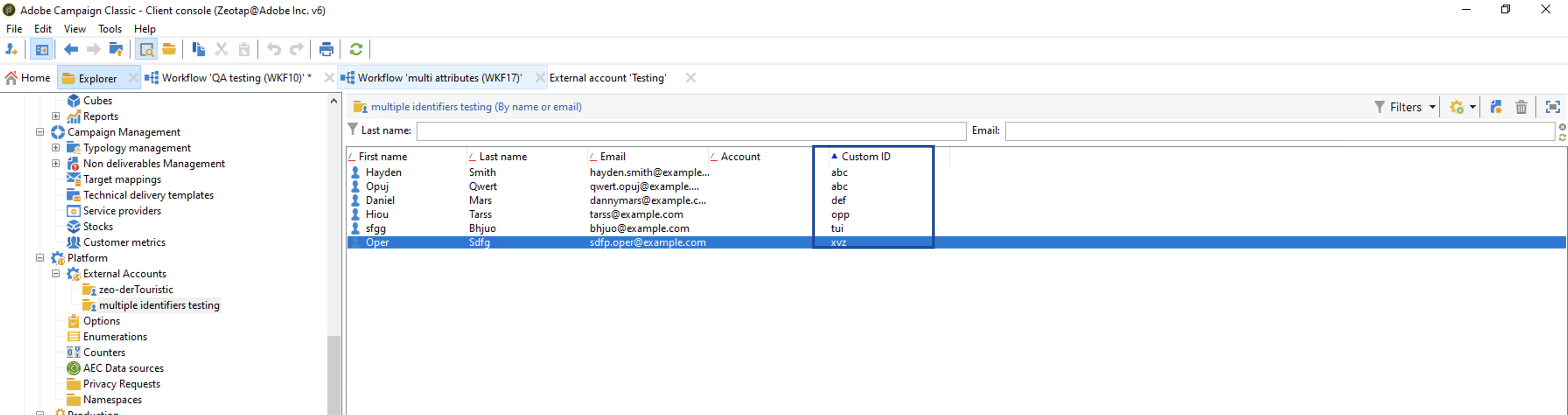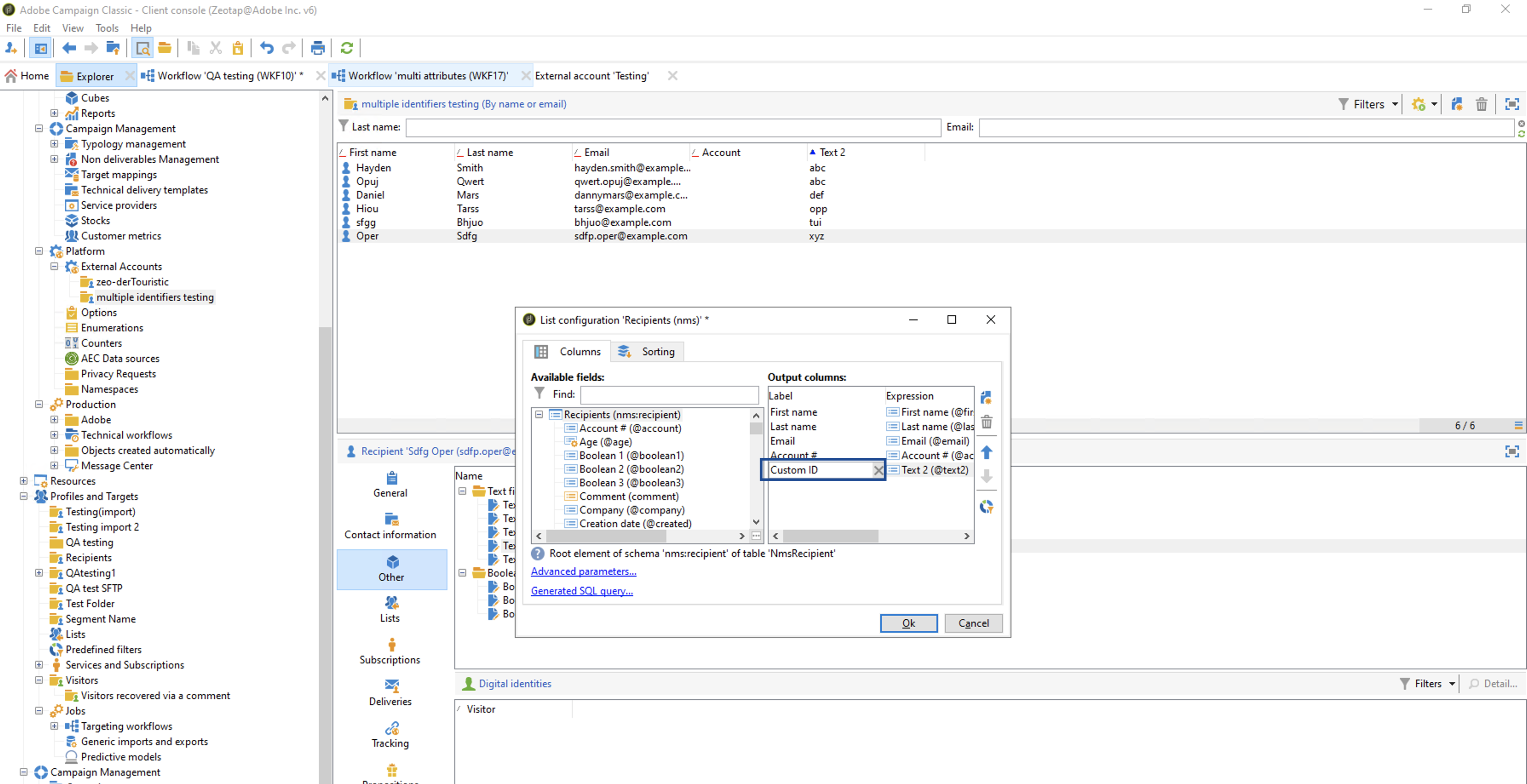 b. If you choose Send multiple identifiers to Adobe Campaign as your action, then you can send raw email addresses and Custom IDs to Adobe Campaign. Note that you can map up to five fields while sending custom IDs to Adobe Campaign.