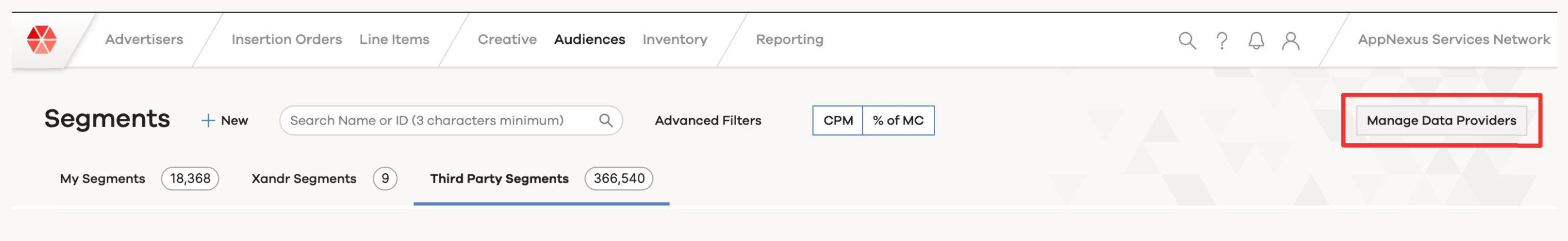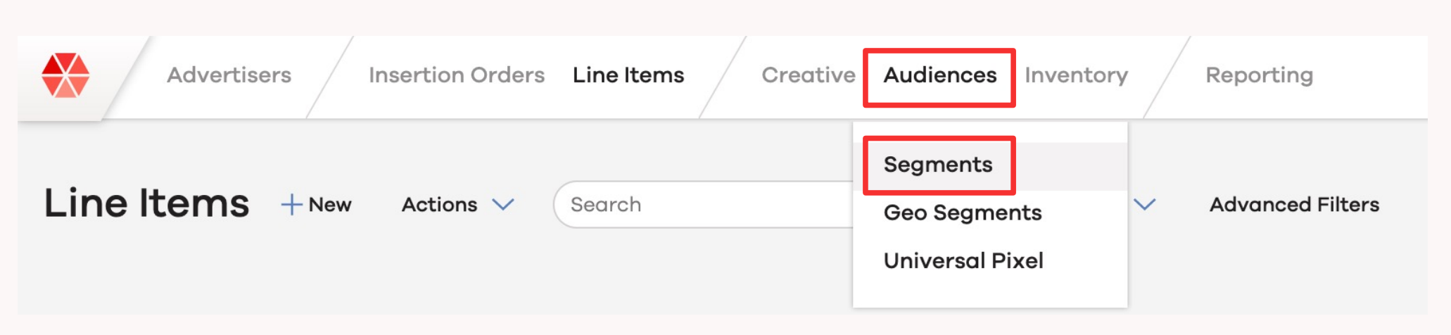 Perform the following steps to activate the third-party segments for the Data Marketplace setup:Click the Audiences tab and then click Segments from the drop-down menu.