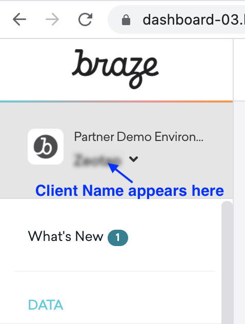 This is your client name for your Braze account. You can find it by navigating to the Braze Console as shown in the screenshot below.