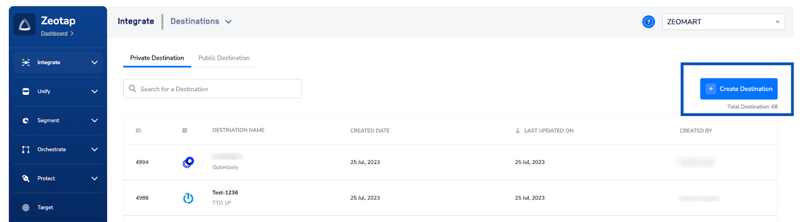 In Zeotap:- Active Zeotap account with appropriate permissions