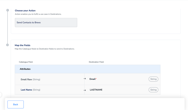The following fields are essential for the integration to work properly: Required Fields:- Email Address: Map your Zeotap email field to Brevo’s email field (this is the primary identifier)