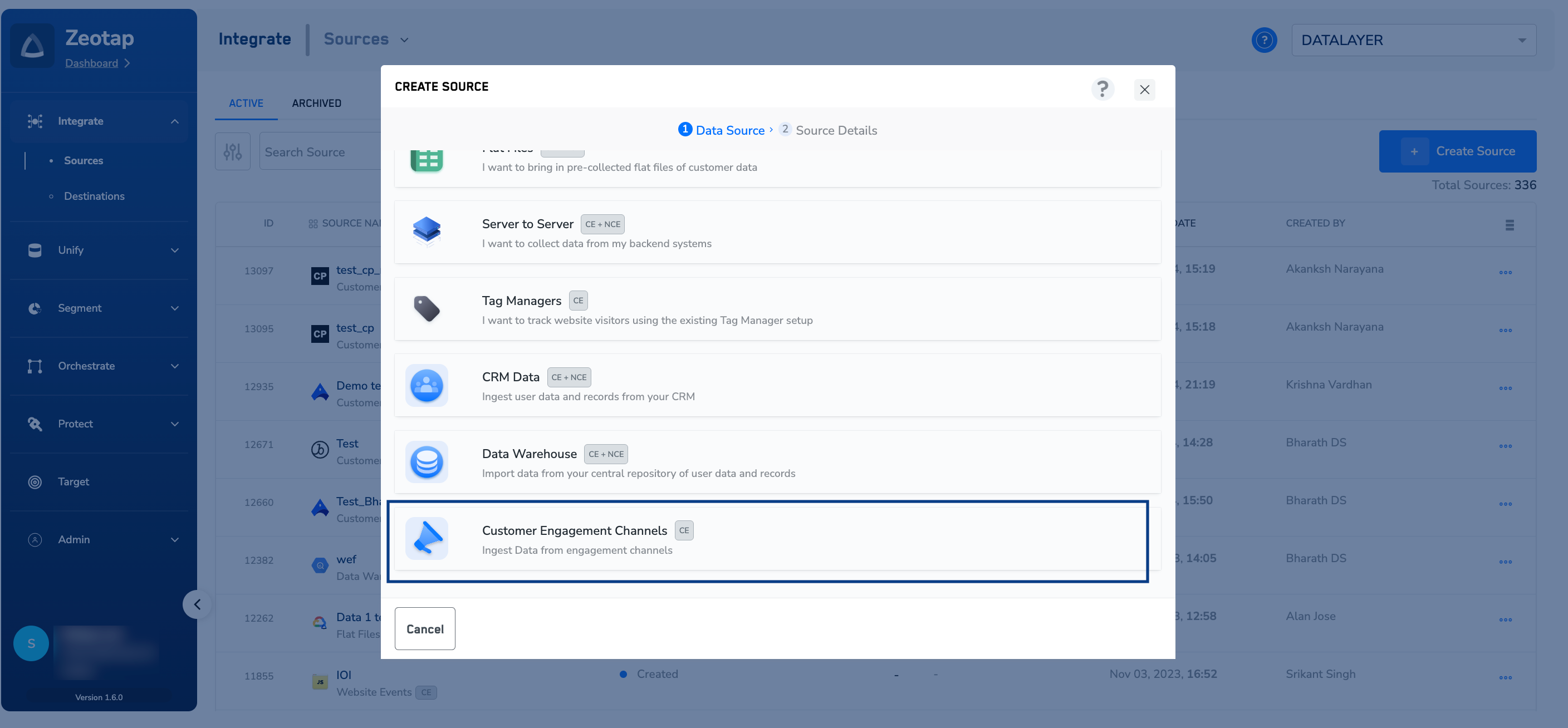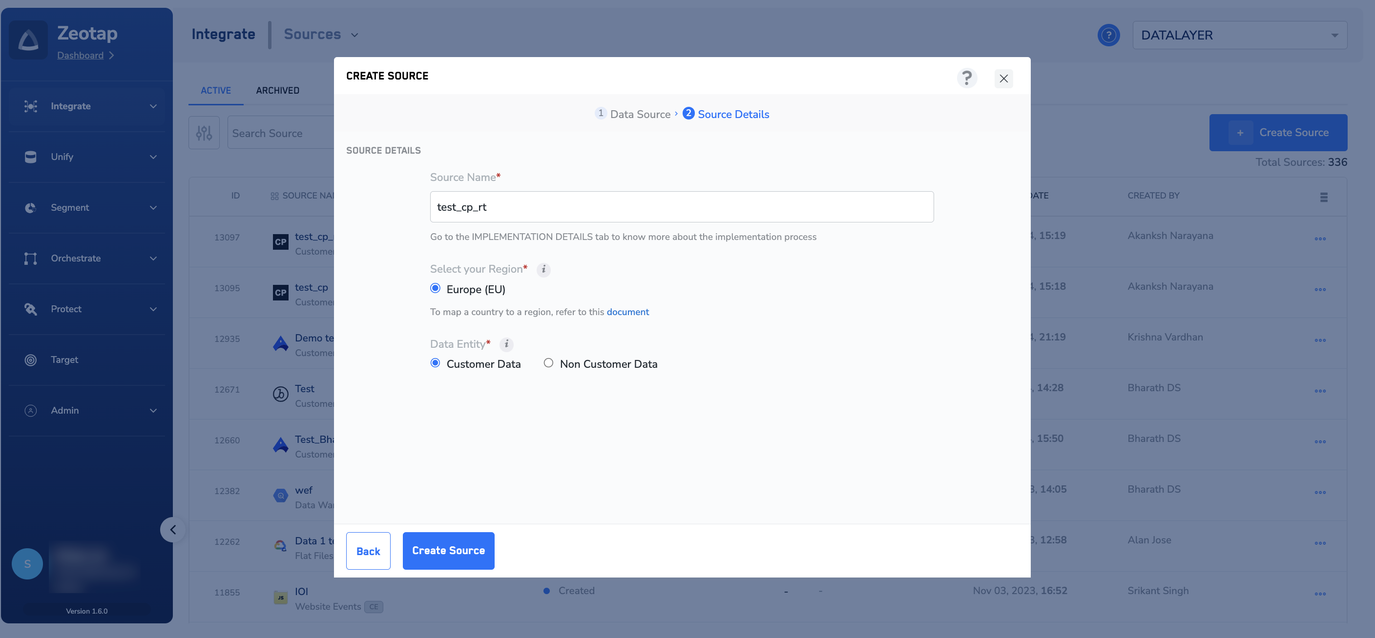 Under Data Entity, depending on the type of data that you want to ingest, choose either Customer Data or Non Customer Data and proceed with the source creation. To know more about Customer Data and Non Customer Data, refer here.