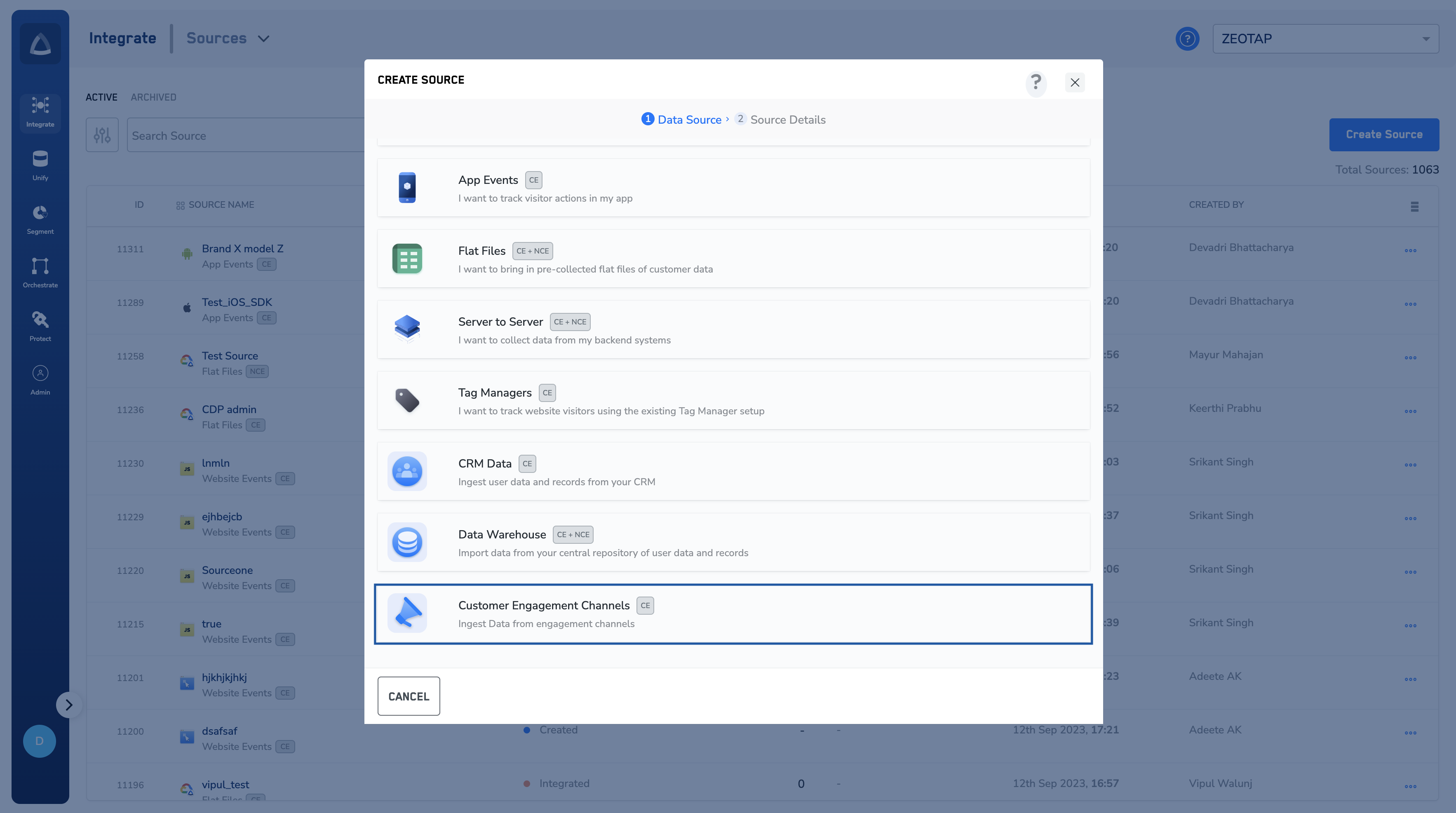 Under Data Entity, depending on the type of data that you want to ingest, choose either Customer Data or Non Customer Data and proceed with the source creation. To know more about Customer Data and Non Customer Data, refer here.