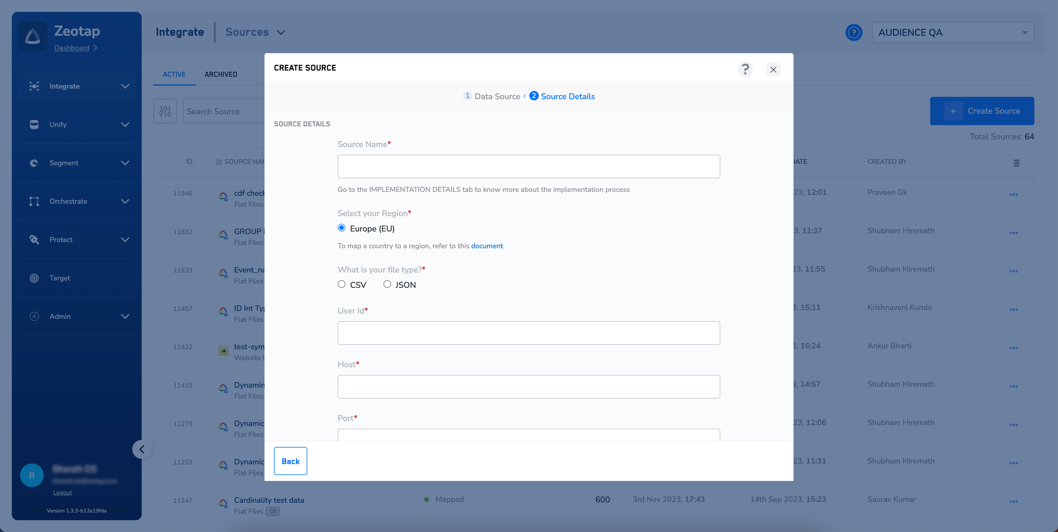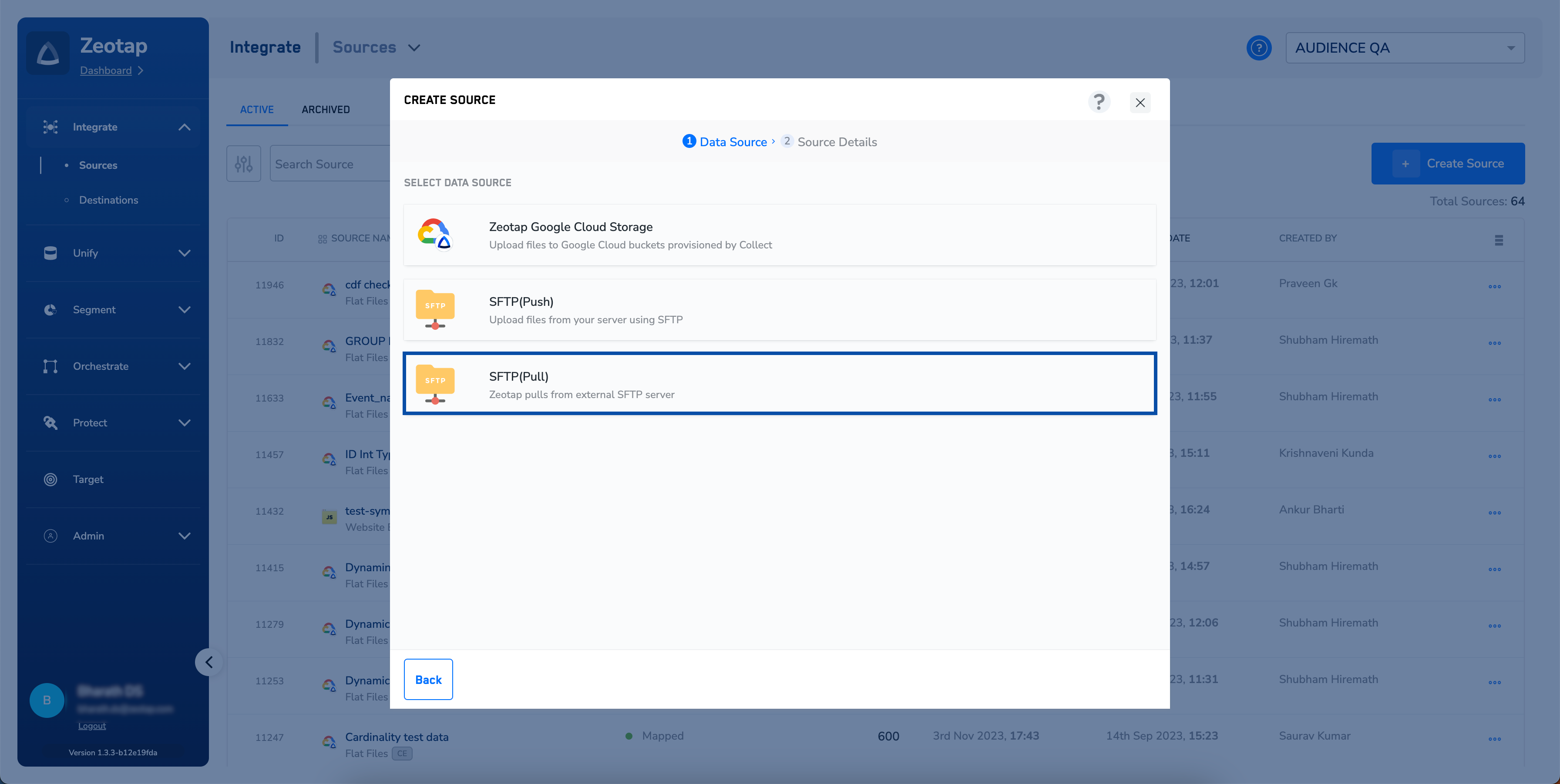 - After you have created an SFTP source, ensure to raise a ticket with Zeotap’s Support Team to complete the source creation process. To know more about how to implement an SFTP Source, refer to Implementing SFTP Source.
