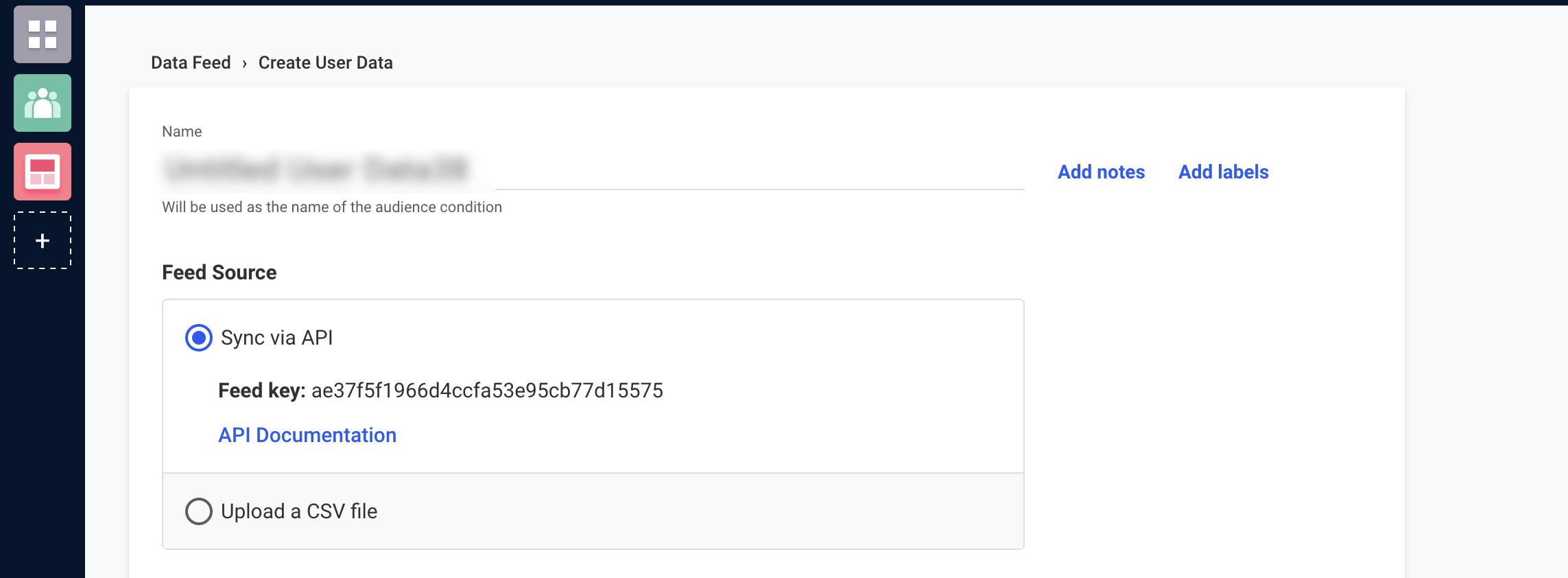 Before pushing the segments to Dynamic Yield, ensure that you have set up the feed as mentioned below.- Create a User Feed and obtain the Feed ID.