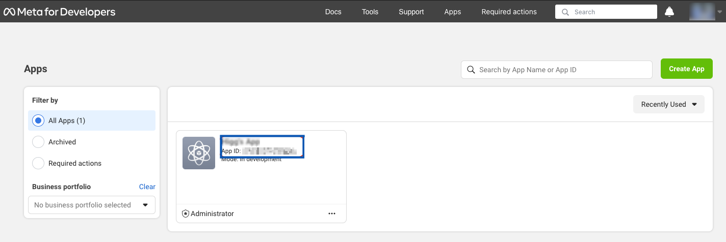 To obtain the App ID, perform the following steps:Visit the Meta for Developers website at https://developers.facebook.com/ and log in with your Facebook account credentials.