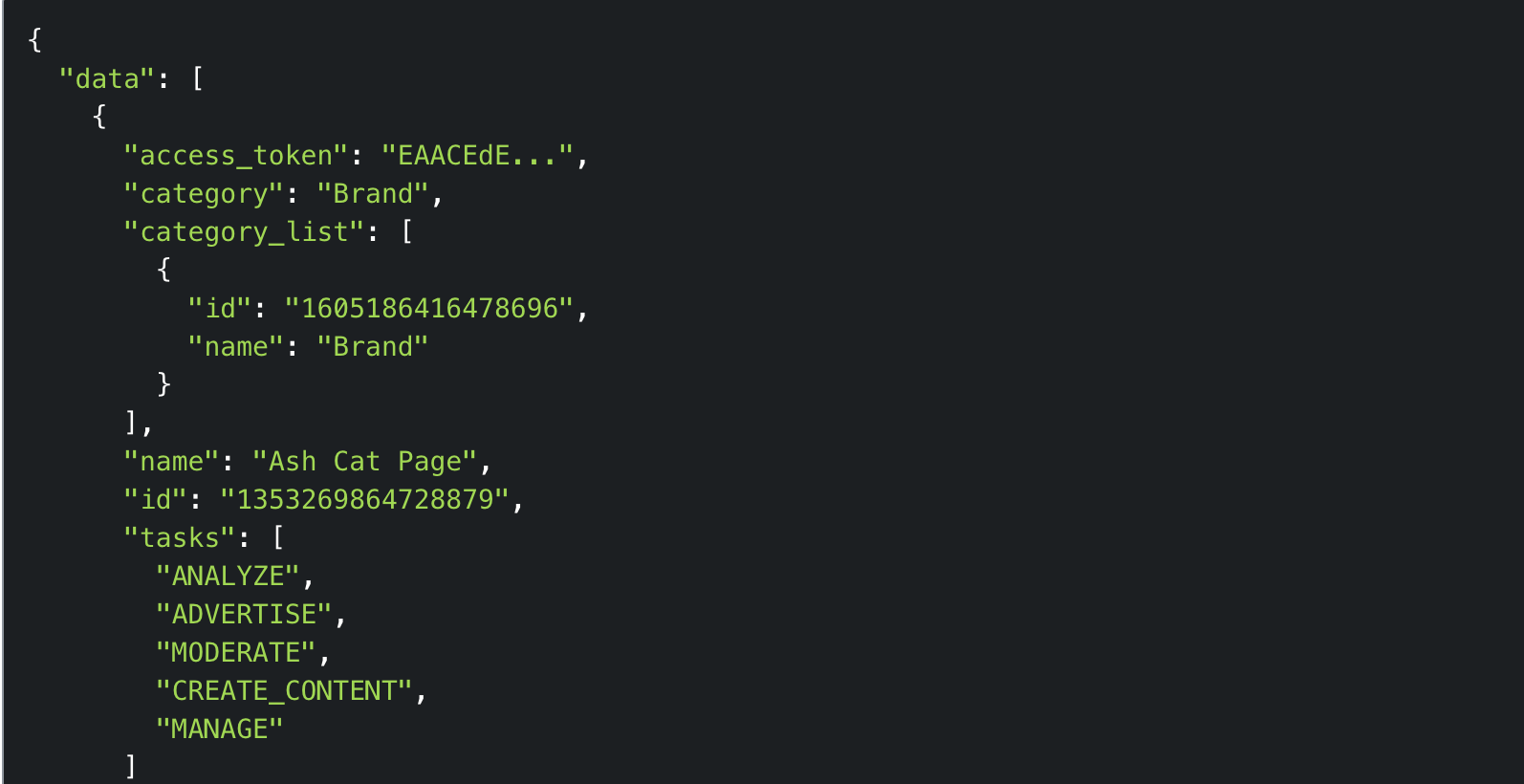 - Page Access Token - A Page Access Token is used to read, write, and modify the data belonging to a Facebook Page. To generate a page access token, an admin of the page must grant your app the Page permission or permissions needed. Once granted, you can retrieve the Page access token using a user access token with the required permissions. Learn more