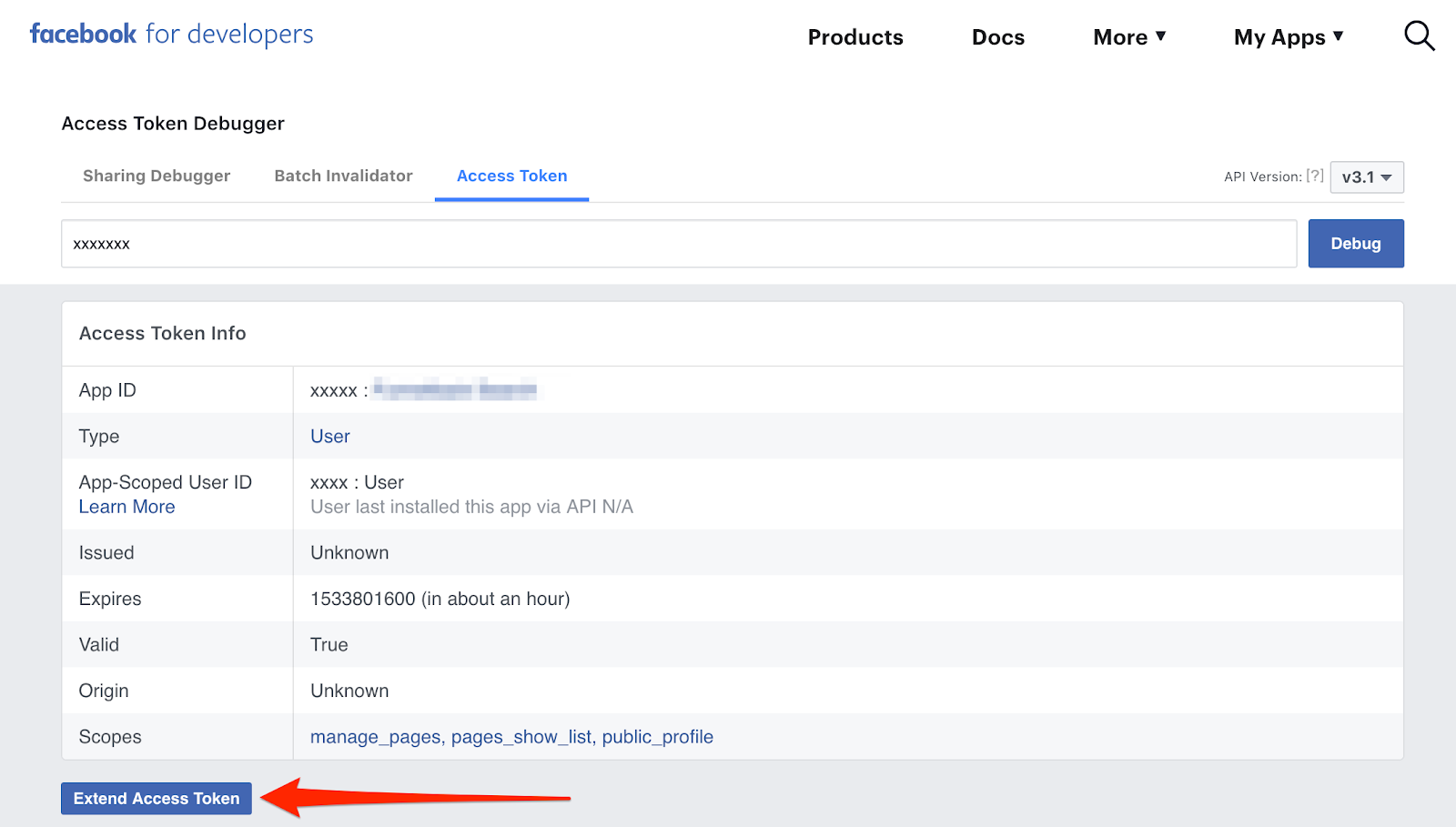 Copy this new long-lived access token to use in the next step. If you do not see Extend Access Token and your token expires within two months, then it indicates that you already have the long-lived access token. In that case, you can skip this step and go to the next step.