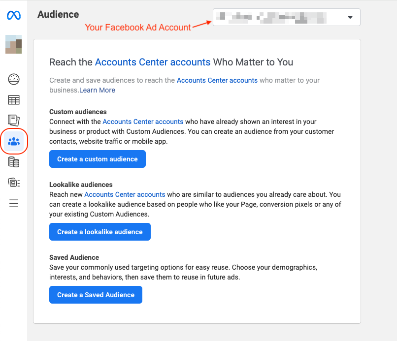This is the 16 digit Facebook Ad Account ID. Ensure that you have full access to the Facebook Ads account you want to forward your audience data to. To do so, perform the following steps:Log into Facebook Business Manager at business.facebook.com.