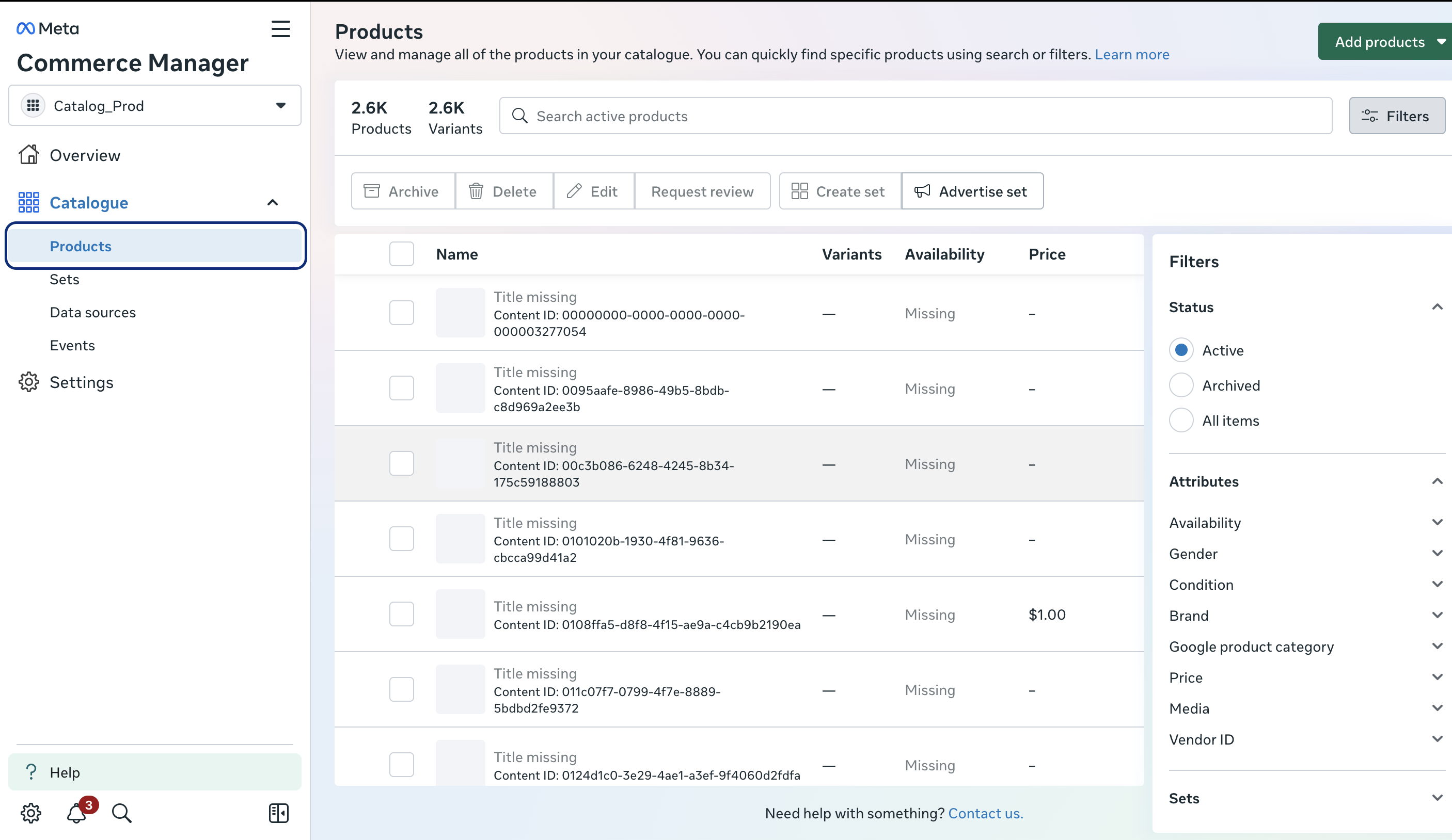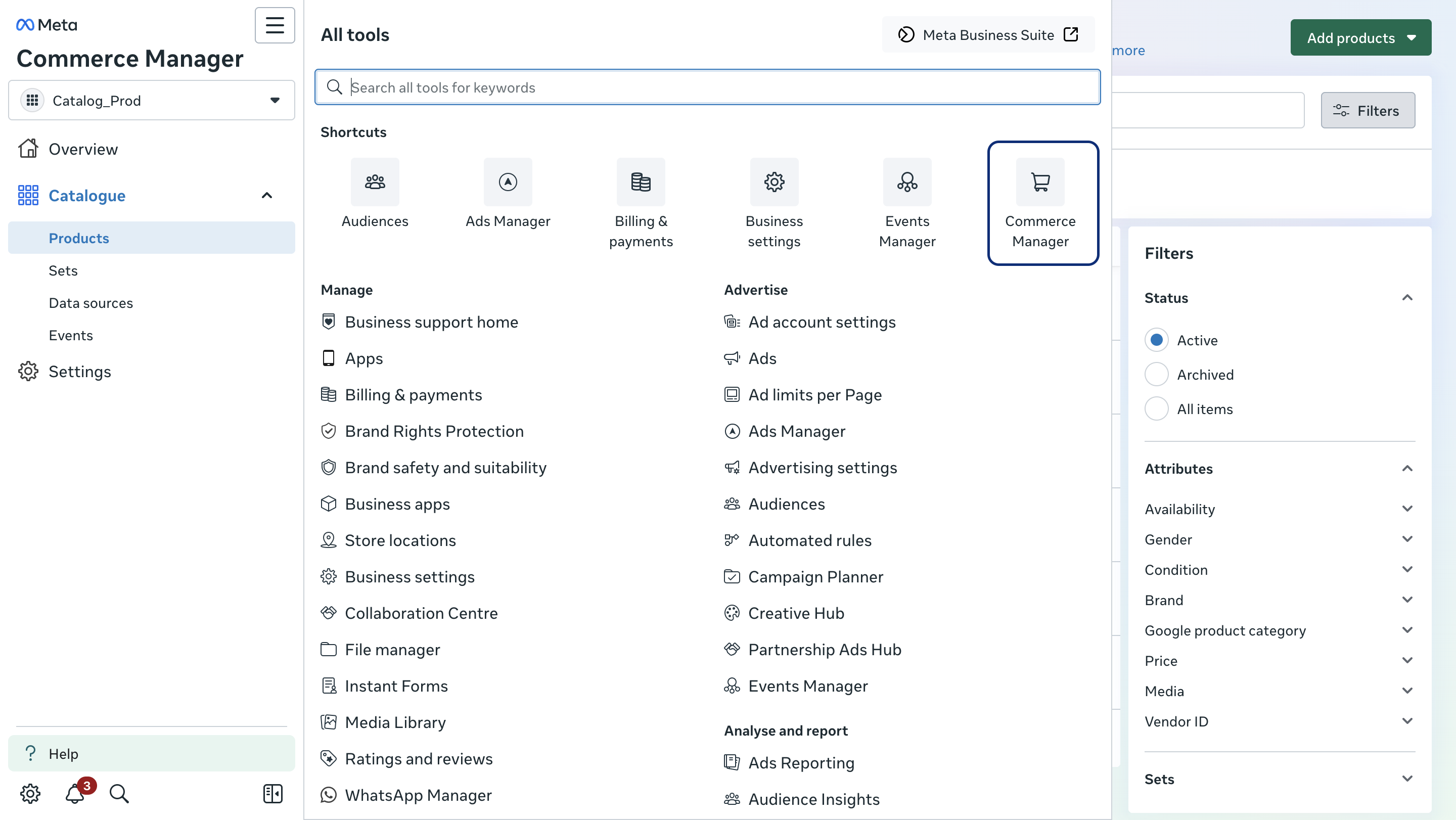 - Catalog ID a. Unique identifier for your Facebook Product Catalog b. Found at: Commerce Manager > Catalogs > Your Catalog > Settings