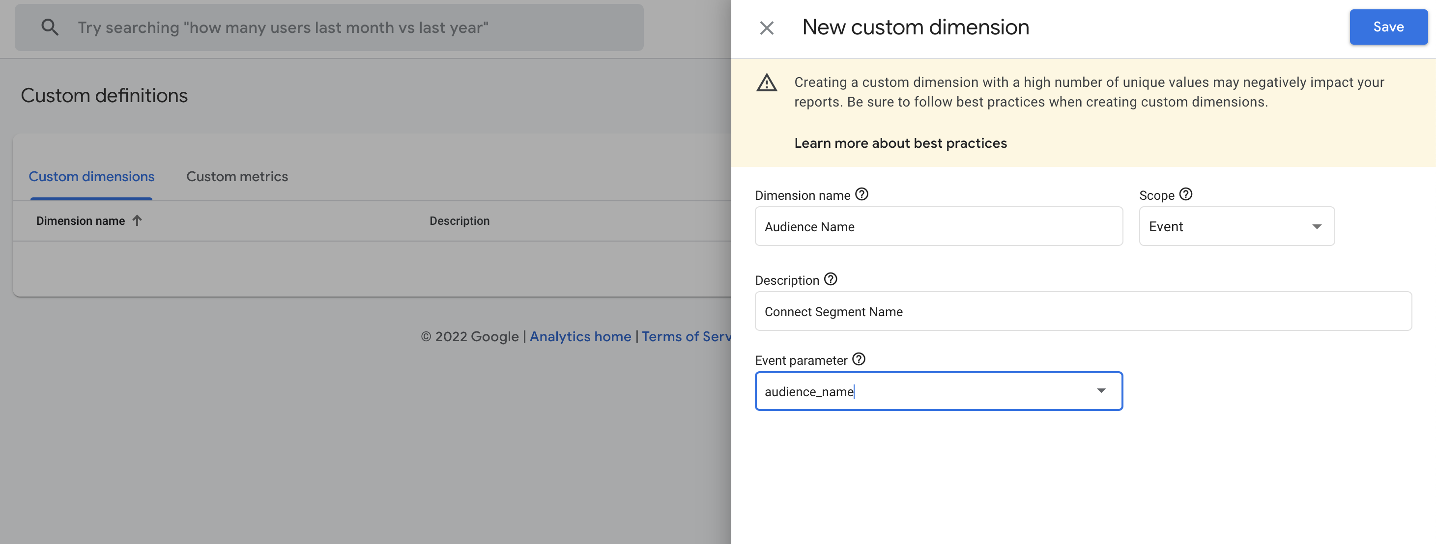 Note:Audience Name created by the clients must be 100 characters or fewer, or else it will not be ingested by GA4.