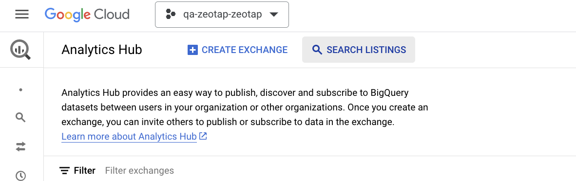 Before we proceed with the detailed steps to set up the integration, it is necessary to understand the components of the Publisher-Subscriber model for the Google Analytics Hub. Shared datasets A shared dataset is a BigQuery dataset that is the unit of data sharing in Analytics Hub. To know more about shared datasets, refer here. Data exchanges A data exchange is a container that enables self-service data sharing. It contains listings that reference shared datasets. To know more about Data exchanges, refer here. Listings A listing is a reference to a shared dataset that a Publisher lists in a data exchange. As a Publisher, you can create a listing and specify the dataset description, sample queries to run on the dataset, links to any relevant documentation, and any additional information that can help Subscribers to use your dataset. To know more about Listings, refer here. Linked datasets A linked dataset is a read-only BigQuery dataset that serves as a symbolic link to a shared dataset. Subscribing to a listing creates a linked dataset in your project and not a copy of the dataset, so Subscribers can read the data but cannot add or update objects within it. To know more about Listings, refer here.Enable the Integration