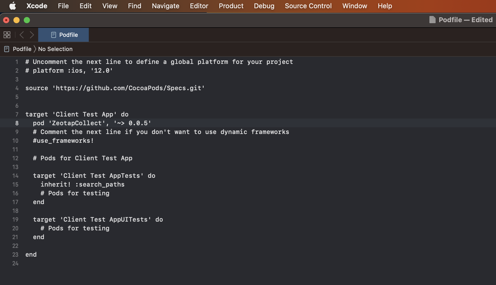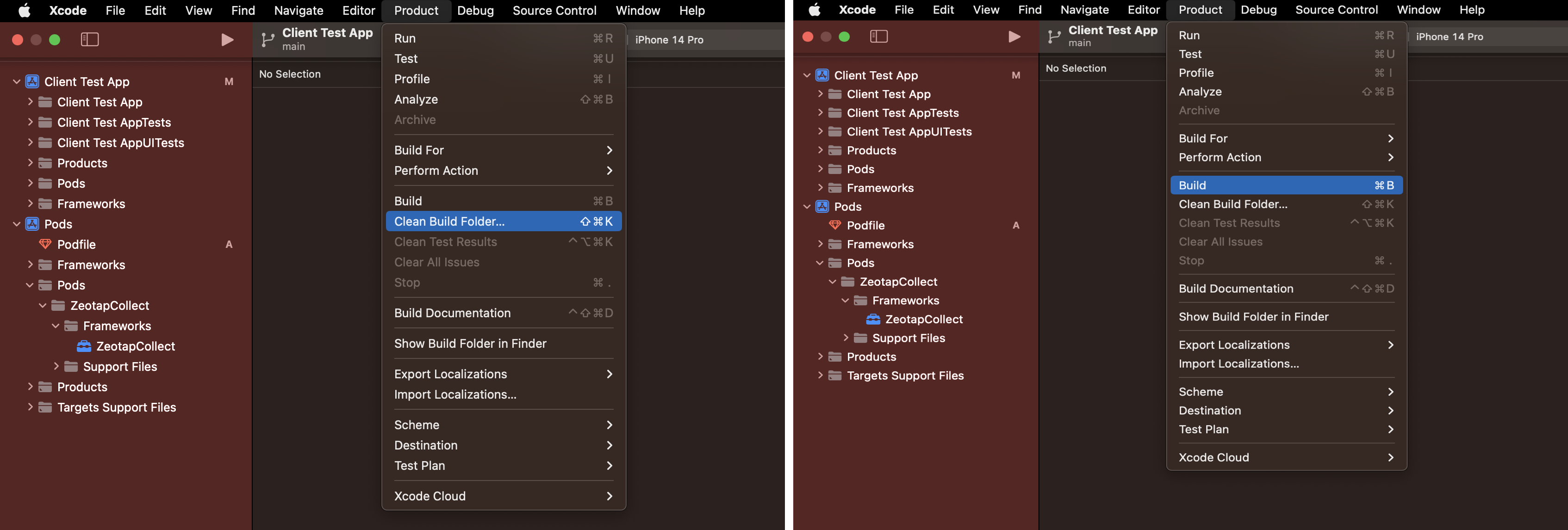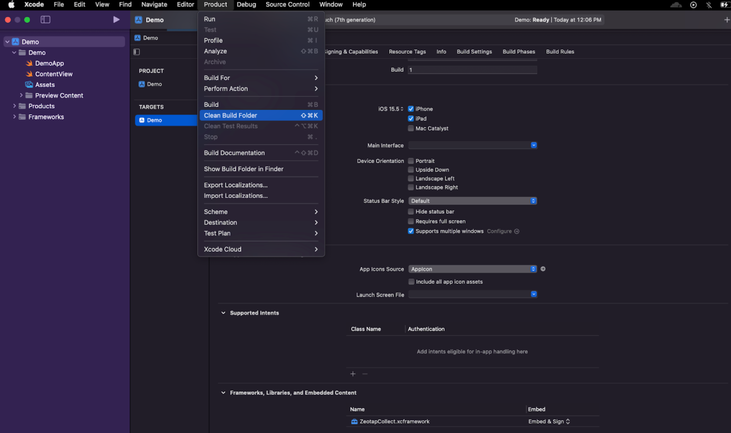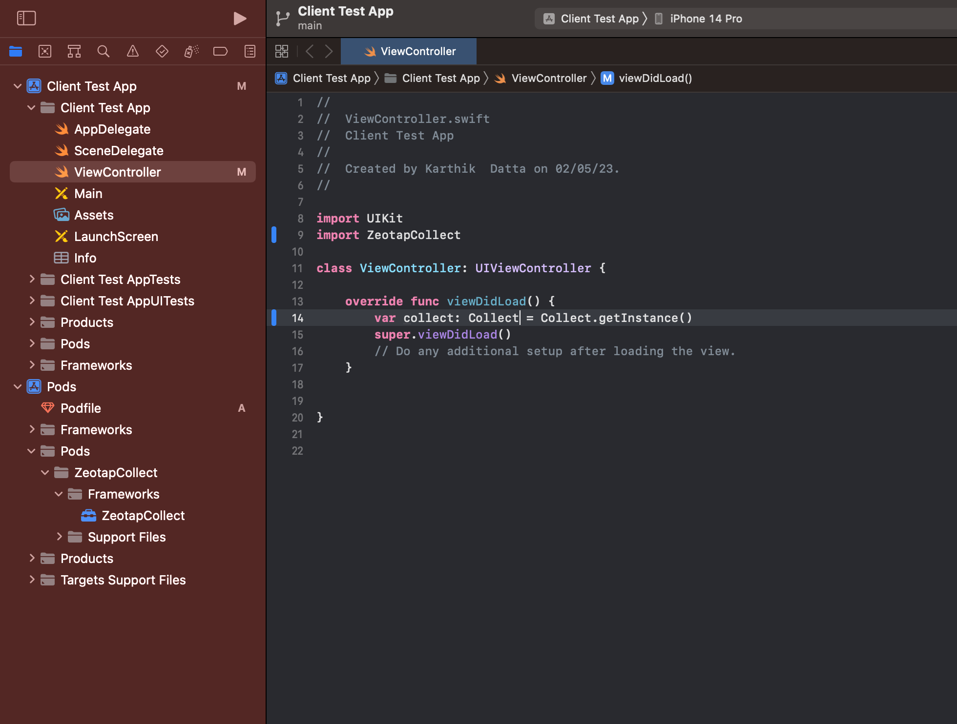 .xcworkspace instead of .xcodeproj when working with CocoaPods.ZeotapCollect iOS SDK: