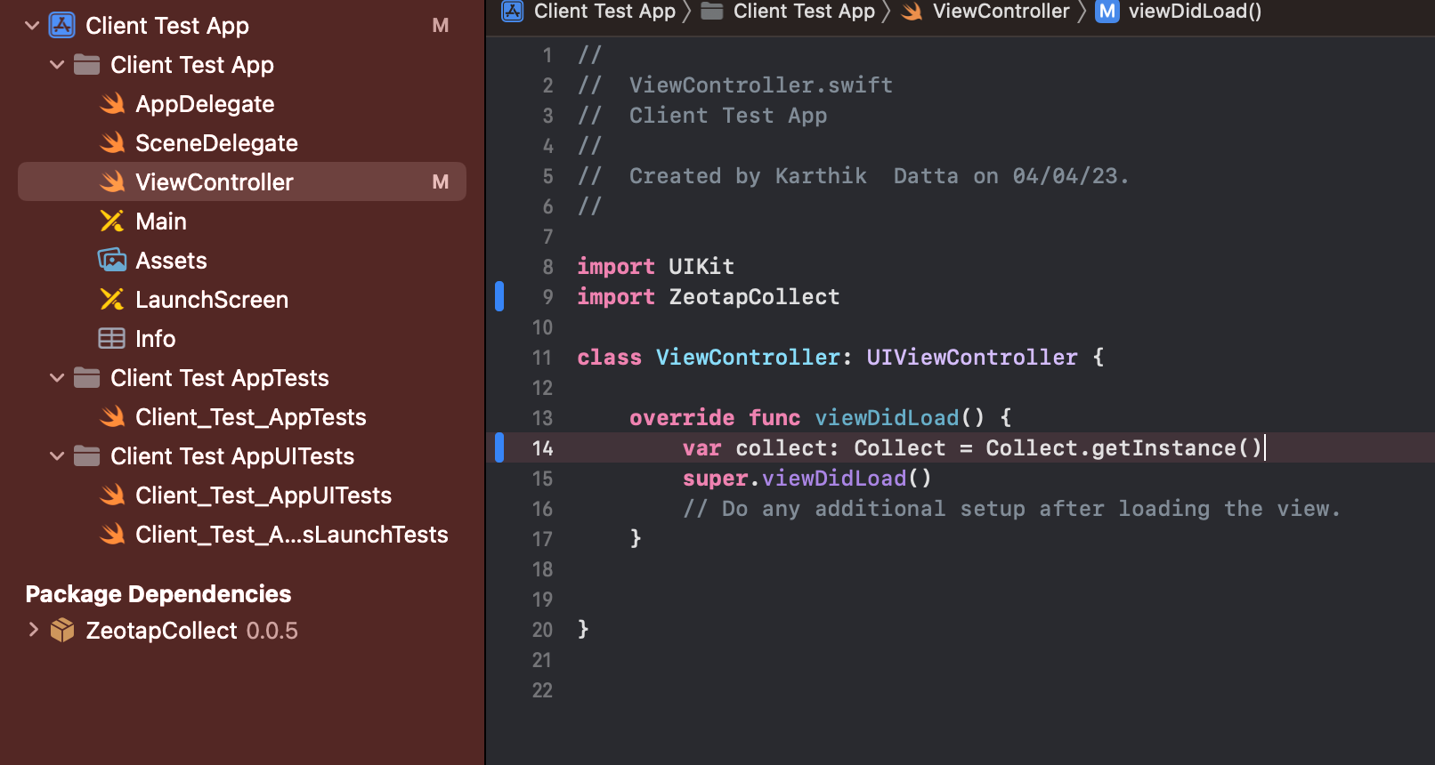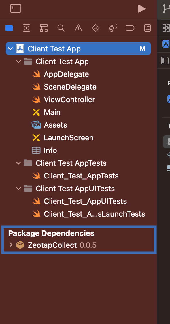 ZeotapCollect appears under Package Dependencies.