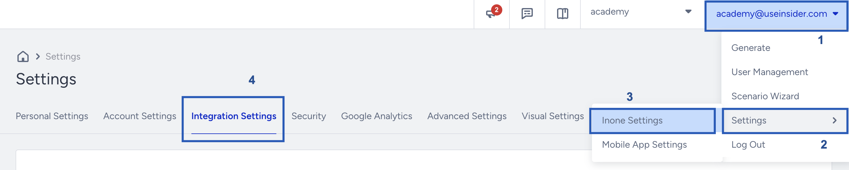 Ensure to obtain the following prerequisites from your InOne (Insider) account before creating an Insider destination in Zeotap CDP:- API key