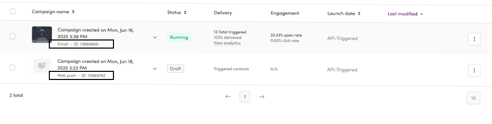 - API triggered campaigns should be activated and set as Running