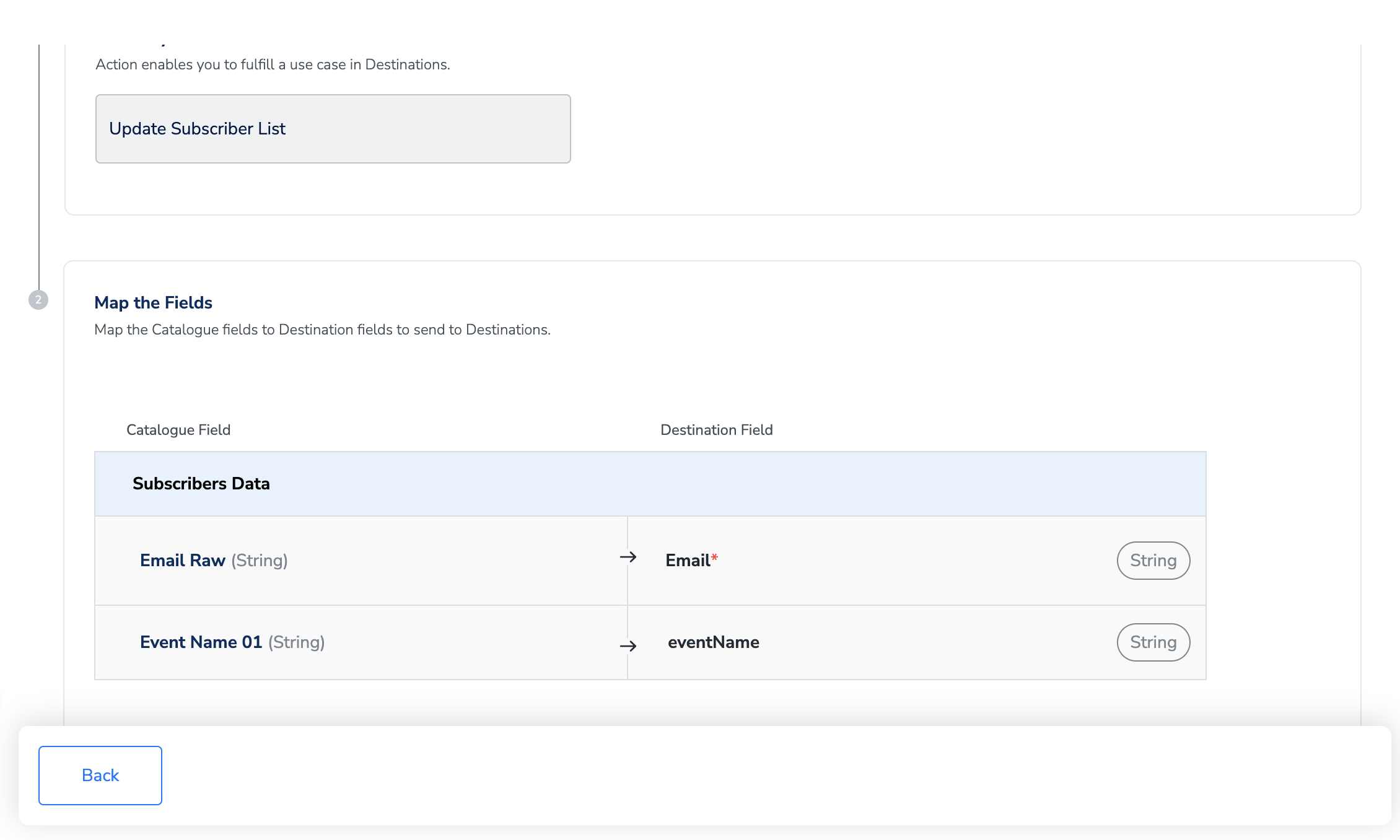 Note:While attaching a destination Campaign ID might be required field even if you are just trying to update subscriber list. You can add any value to it. It will not be used.