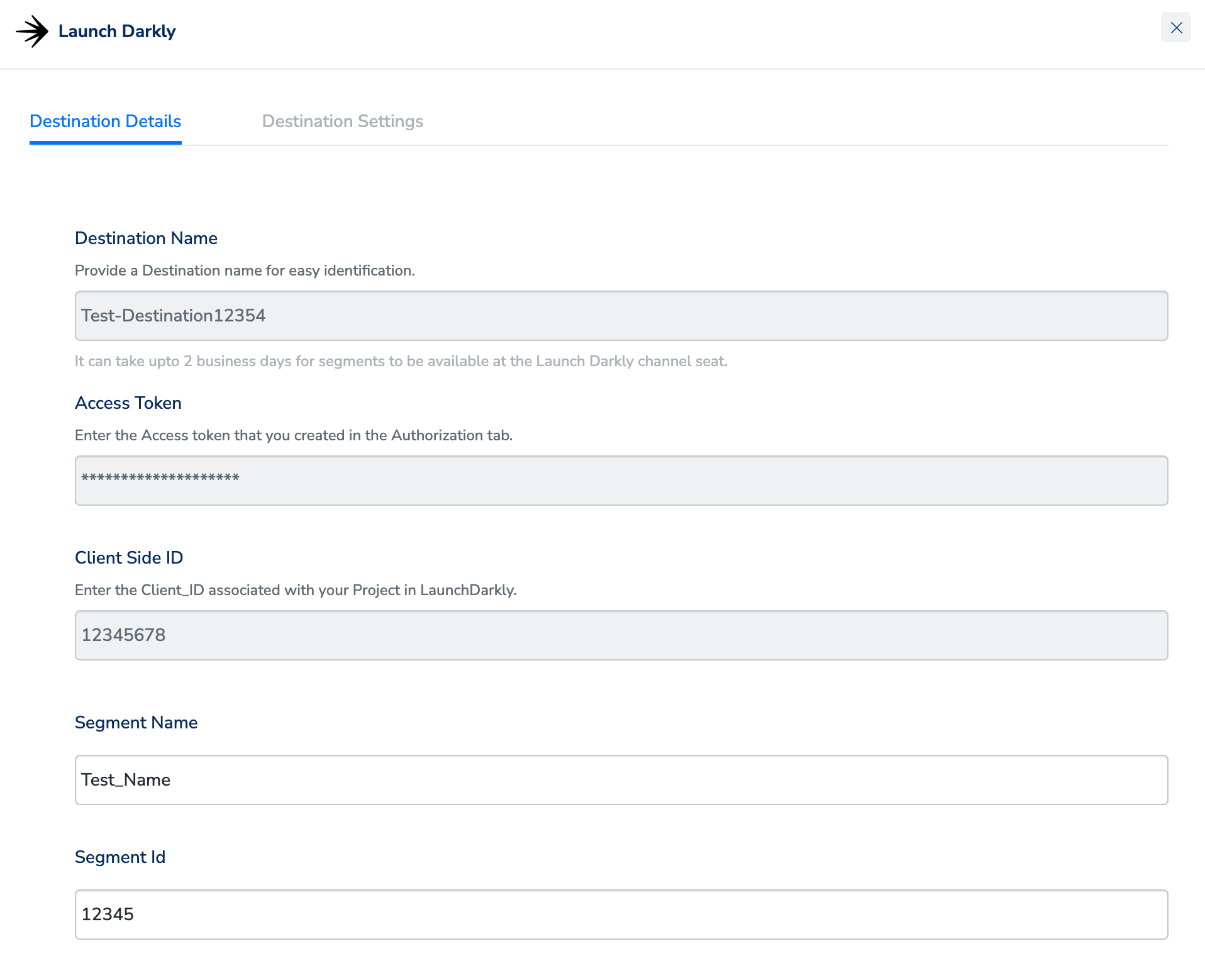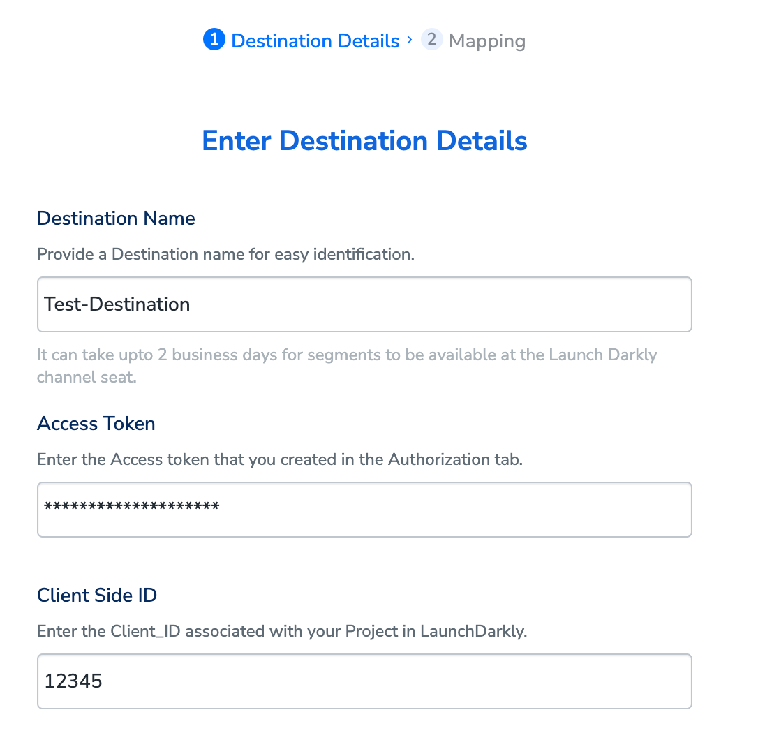 This is the Client-side ID of your LaunchDarkly account. Perform the following steps to obtain the Client-side ID:Destination Setup