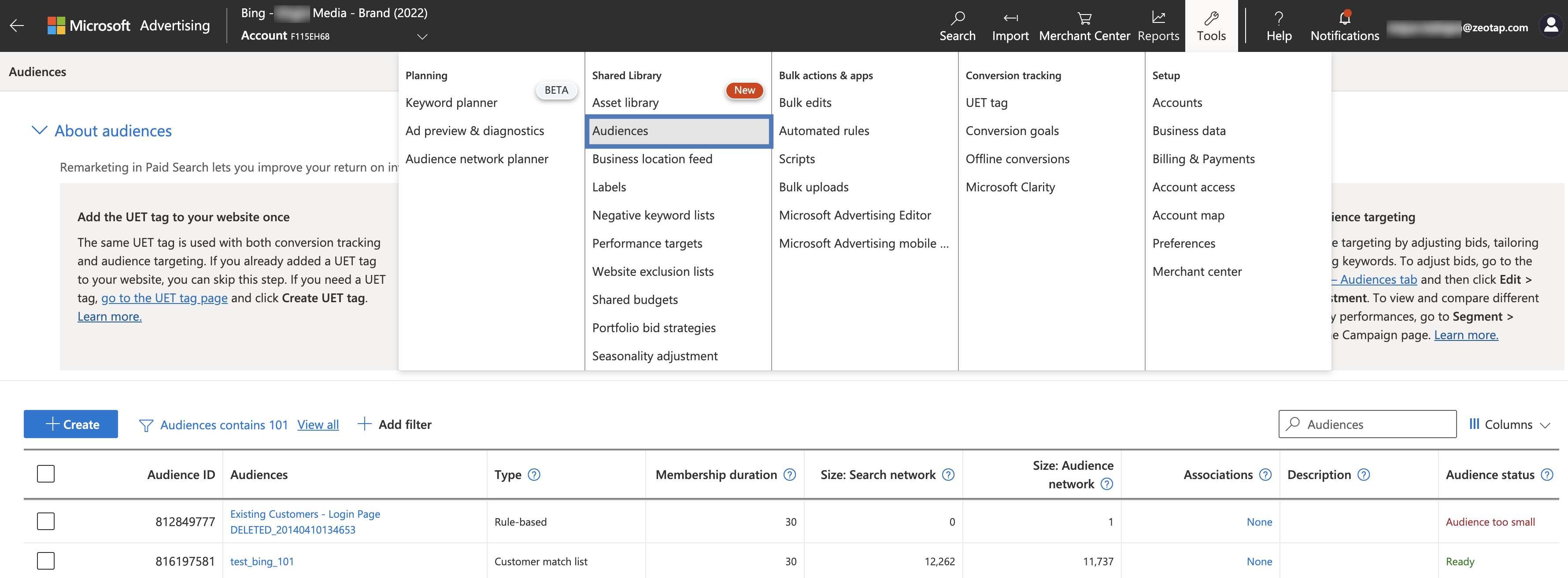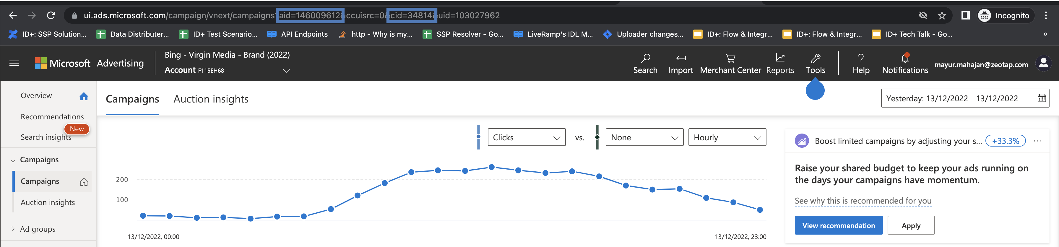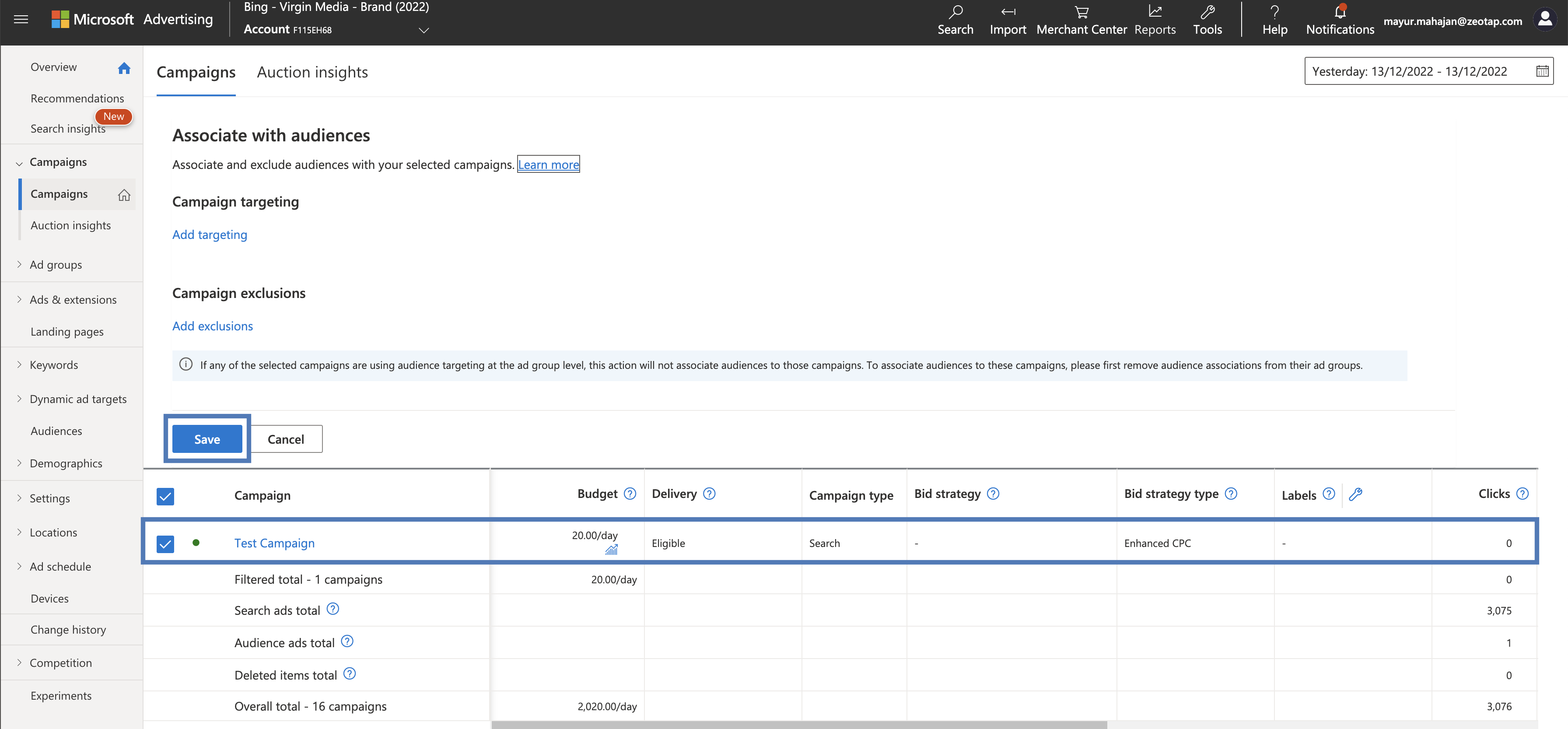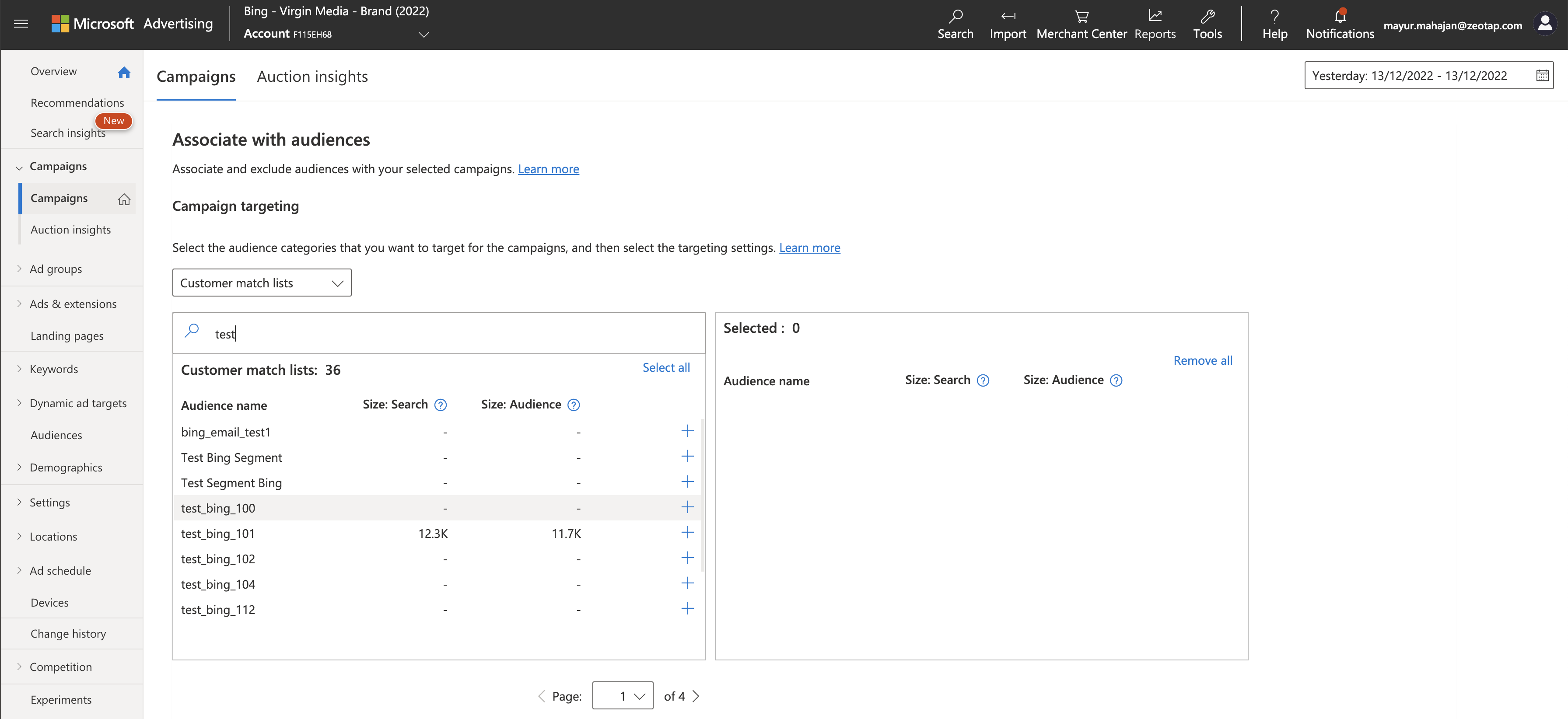 To view the segments pushed by Zeotap on the Microsoft Advertising platform, perform the following steps:Work with Campaigns