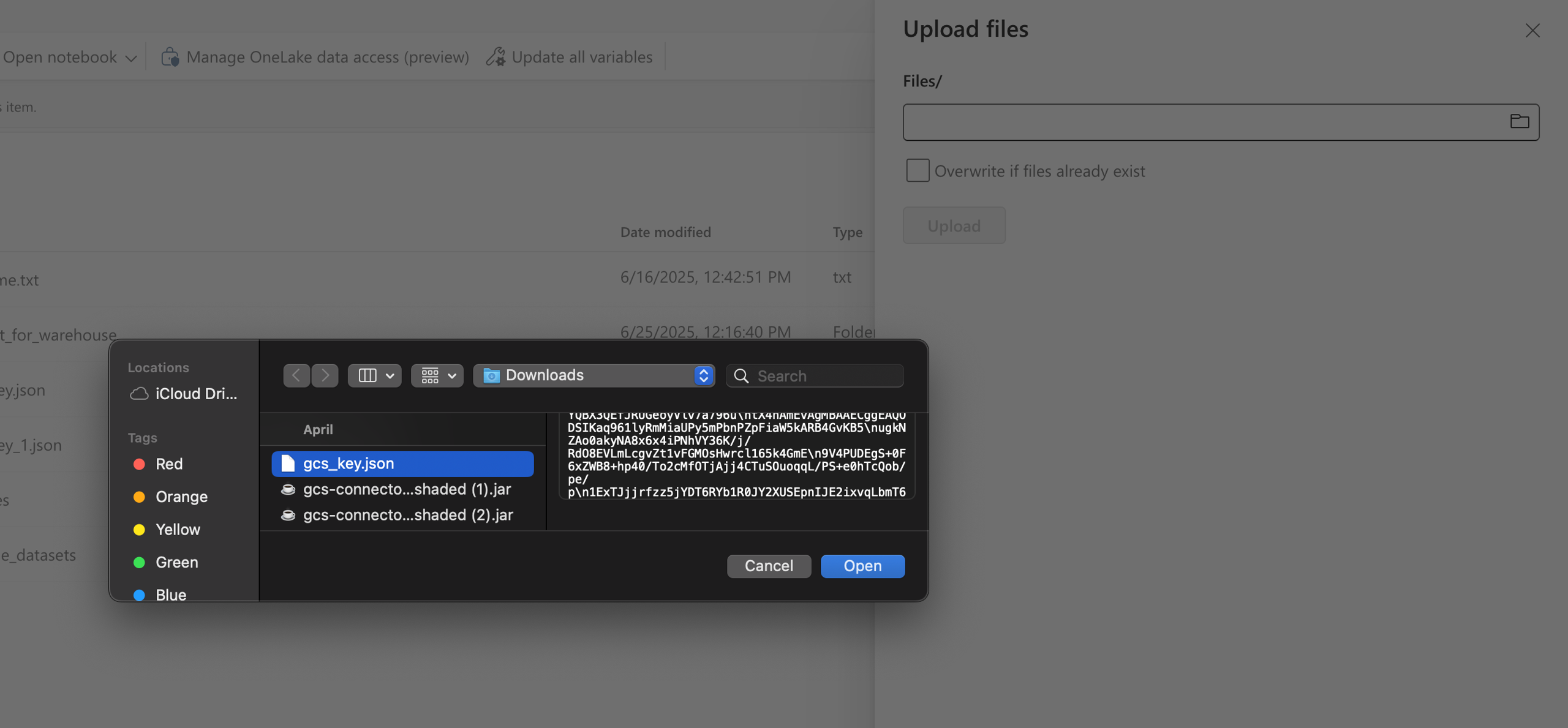 7. Upload the Service Account JSON to MS Fabric Target Lakehouse