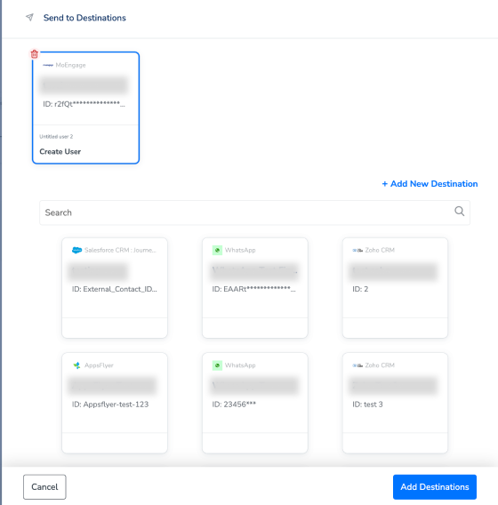 After creating a destination, next, you need to link it in the Send to Destination node within the workflow, as explained below.Under the Destination Details tab, the API key and data center fields are automatically populated based on the value that you have entered while creating the destination.