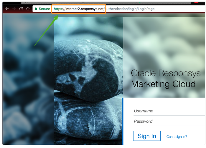 a. You can find your account’s endpoint by simply going to your Oracle Responsys login screen and looking at your url.