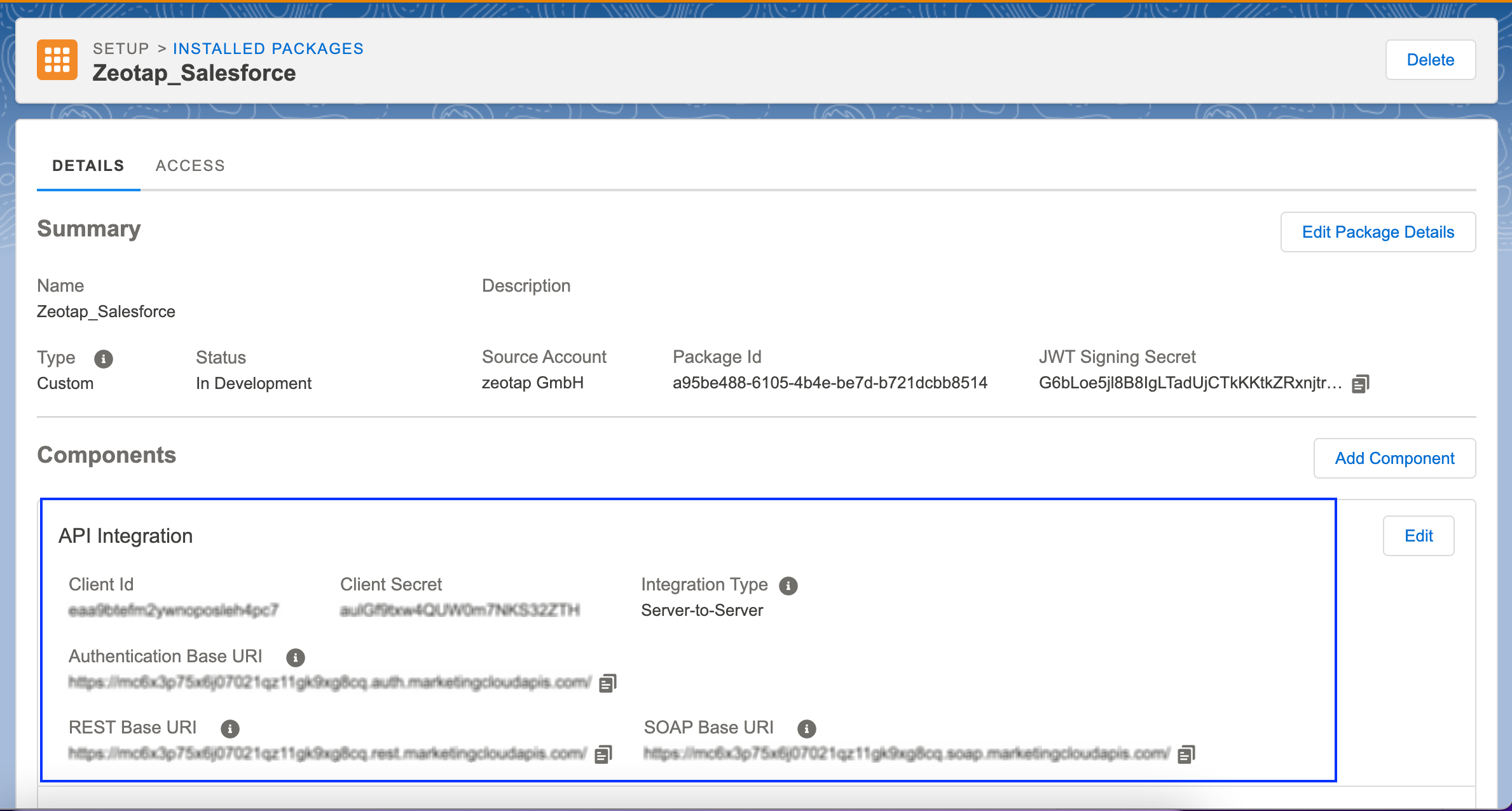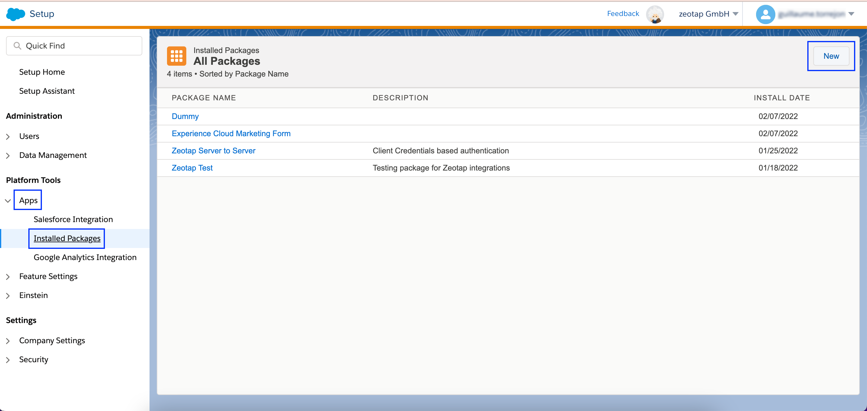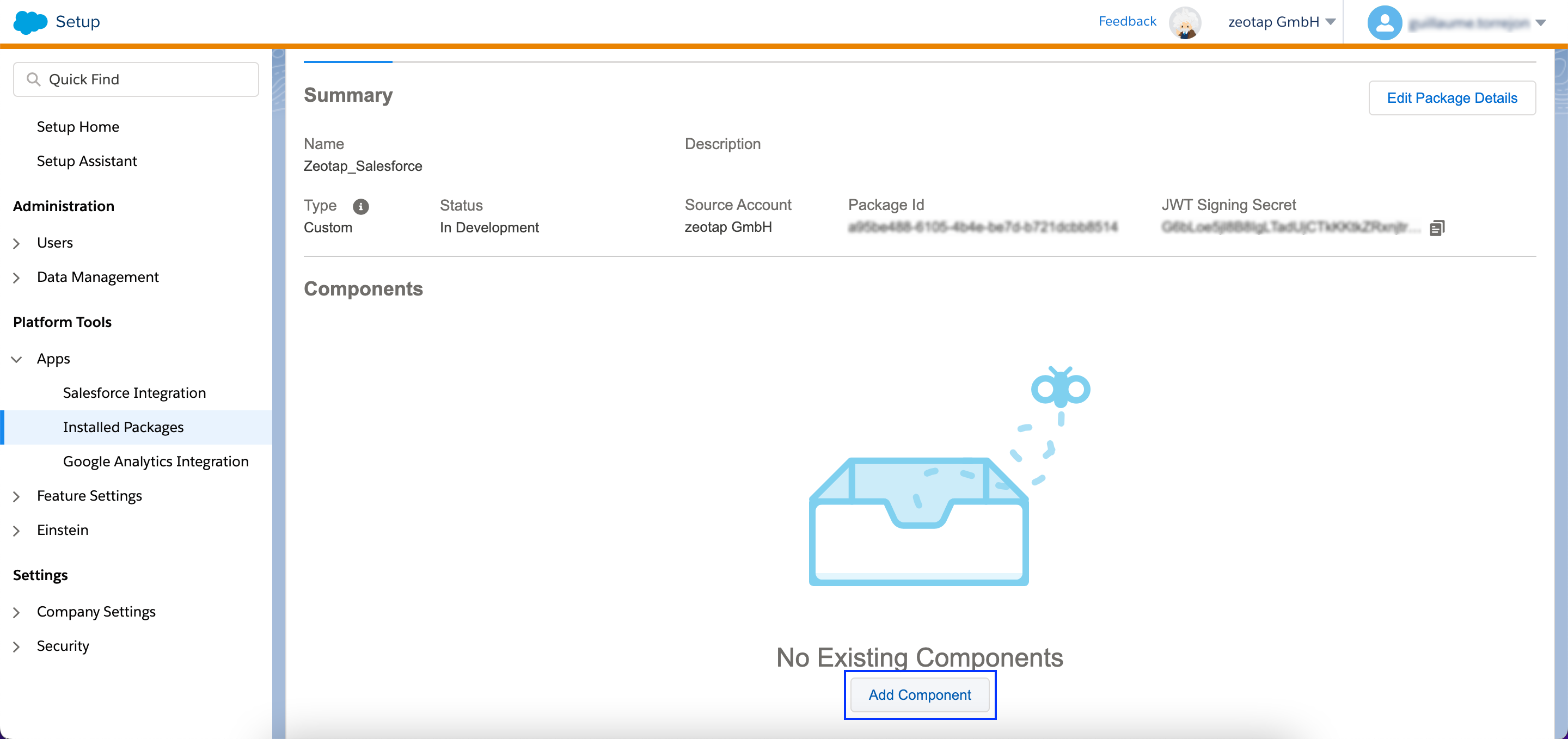 For this integration, a new role has to be created. Perform the following steps to create the new package:Navigate to Settings > Setup > Apps > Installed Packages. The existing list of packages is displayed.