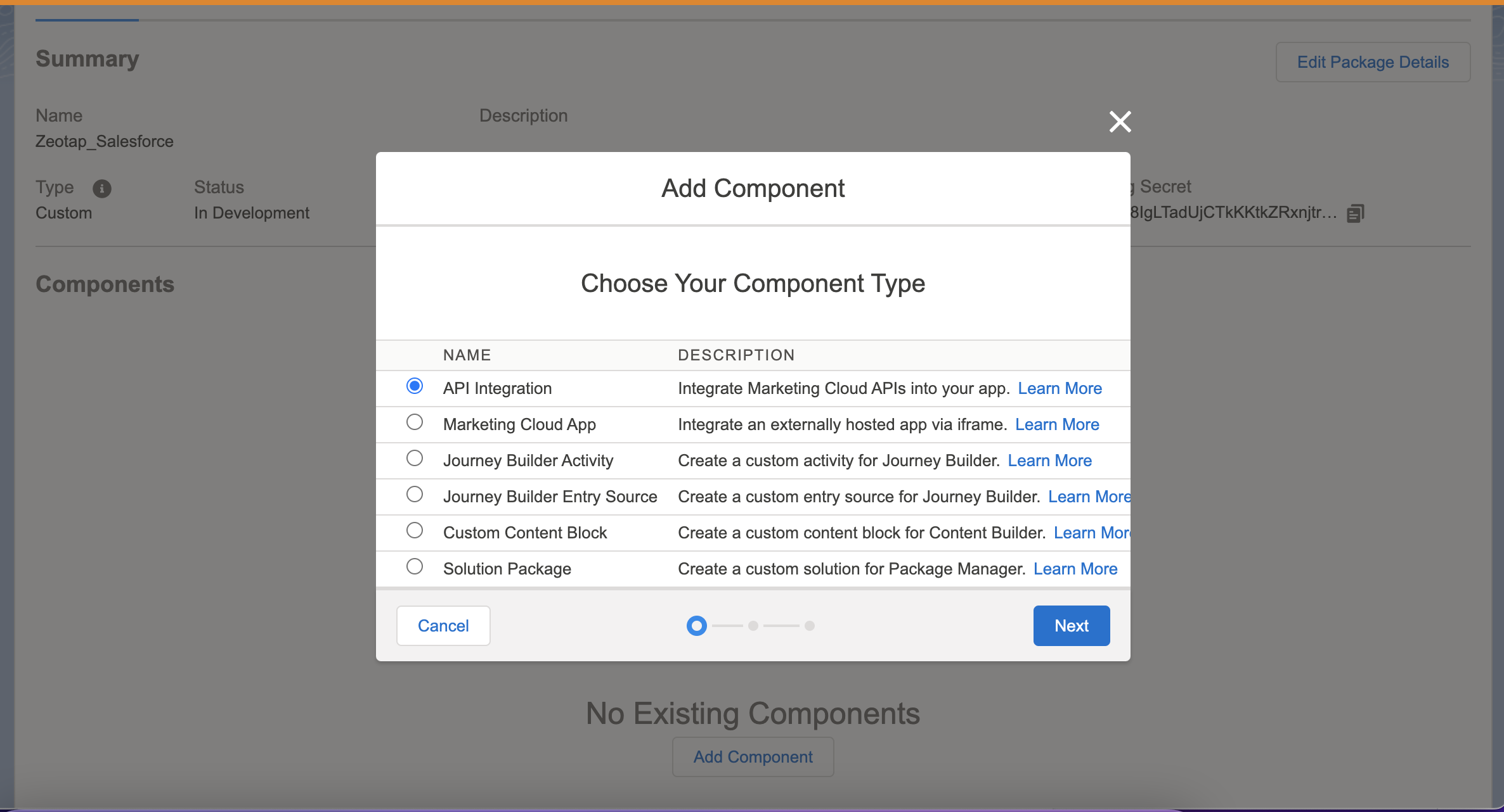 You must have an Admin account to be able to access all the features of Salesforce Marketing Cloud - Data Extension. To proceed with the integration, log into the Salesforce console and create a package.Create a Package