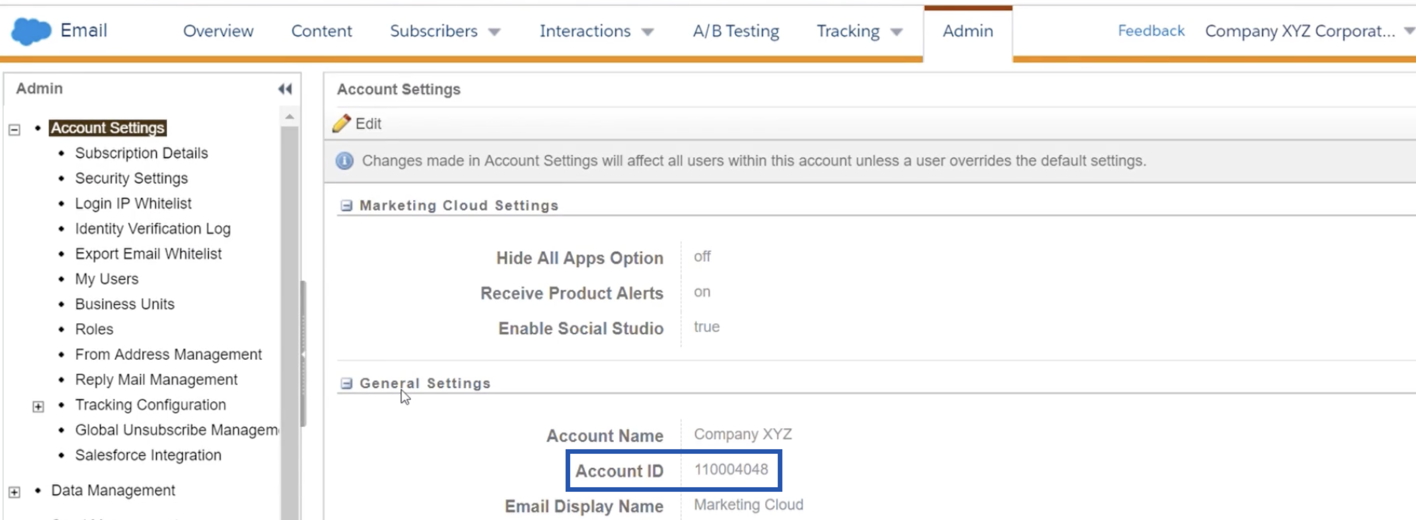 This is the member ID (MID) of your Salesforce Marketing Cloud account. You can obtain this ID in the following two ways:Option 1
