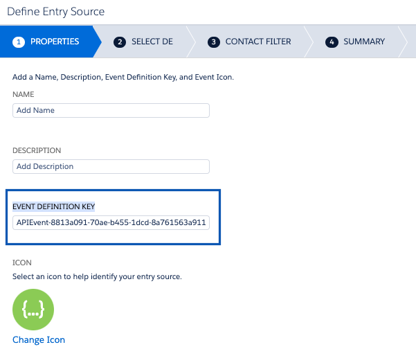 This is a unique identifier assigned to a journey created in Journey Builder. This key helps determine which journey in Journey Builder to use when pushing data from Zeotap CDP. Perform the following steps to obtain the Event Definition Key:Contact Key