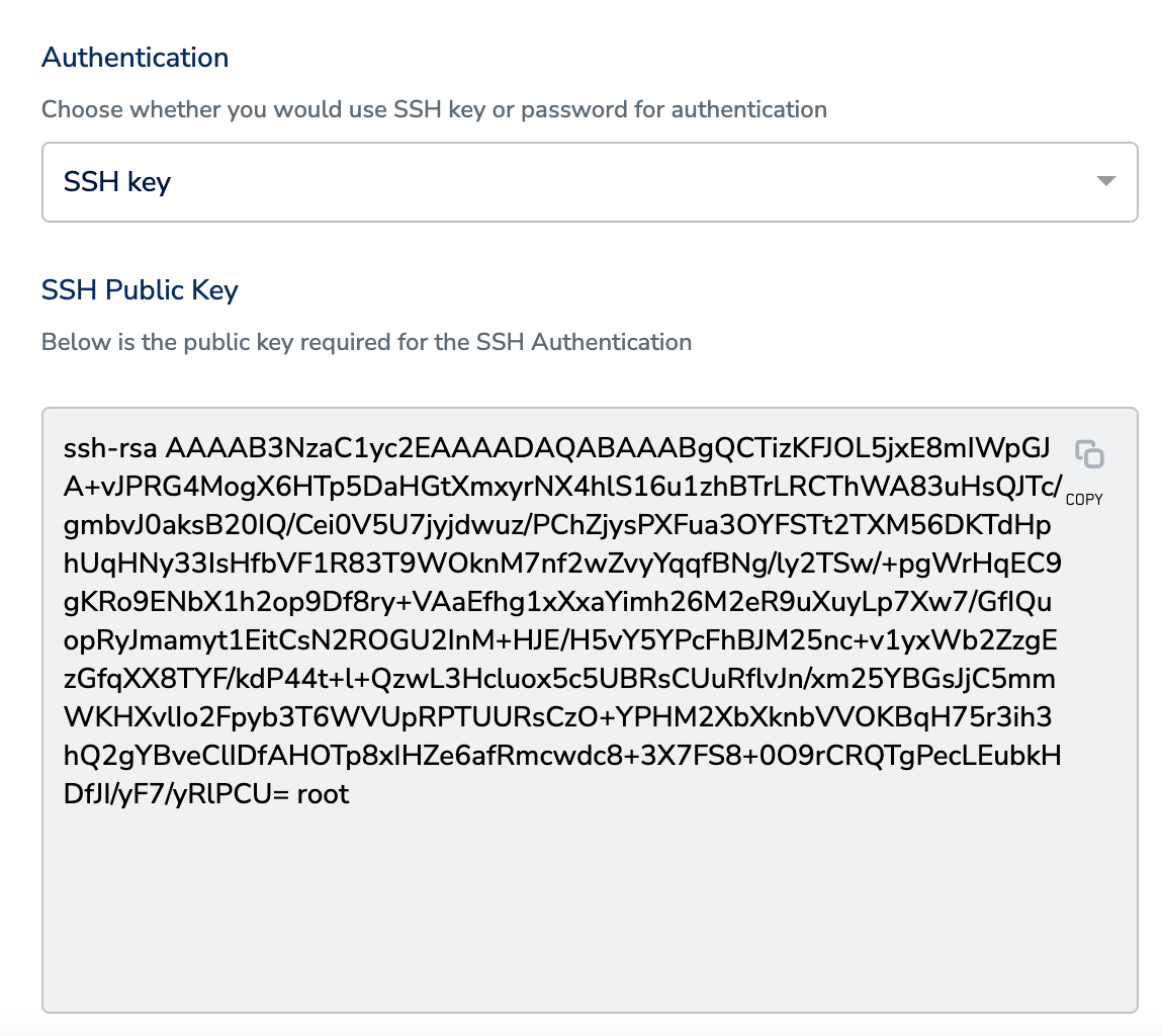 exportpart-01_894548842_20250113-113649855.csv/ export_JSON_part-0_14534354564740_20250113-113649855.jsone. Under Authentication, choose whether you want to use a SSH Key or Password for authenticating your requests on SFTP.i. If you choose SSH Key as your authentication method, then copy the SSH Public Key displayed and use it for authentication on your SFTP server.- Note - SSH-2 version is used for authentication in Zeotap.