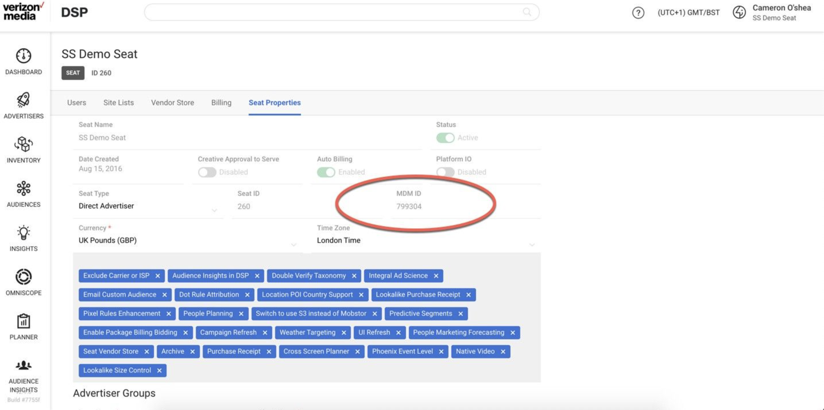 - Seat MDM ID’s - When data is shared to this seat, it will be made available to all advertisers.