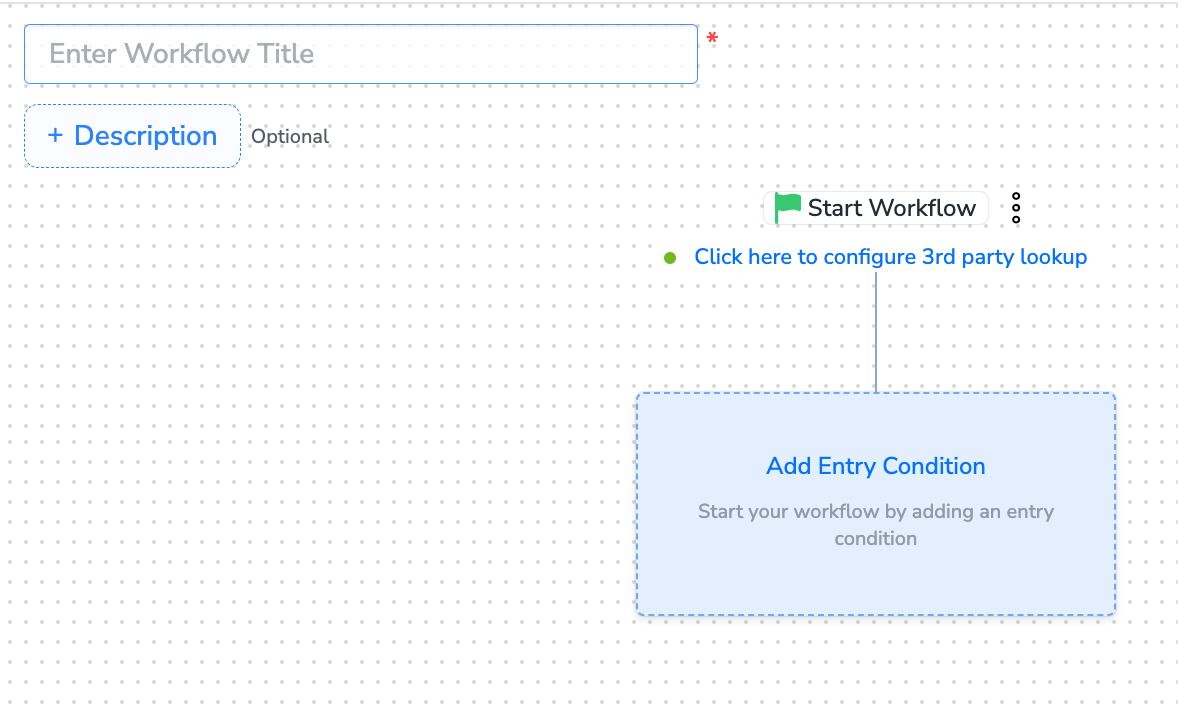 Begin by adding an entry condition and providing the basic details, such as the Workflow Title and Description.