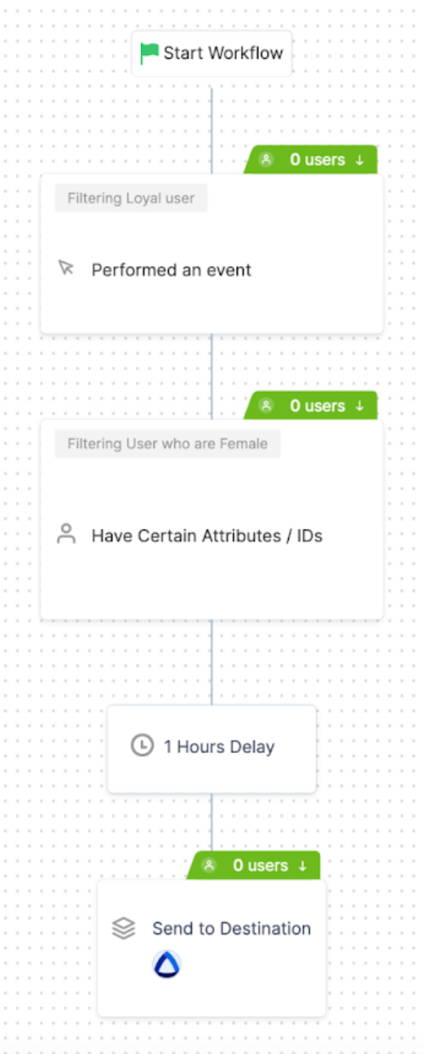 Note:To know about the total number of users sent out by the workflow (not just at the node level), refer to the ACTIVATED USERS column on the listing screen.In the case of improperly mapped data or data type failure, an error appears showing the number of failed records. If a user is associated with multiple records, then all those records are included in the number that appears on the error message.