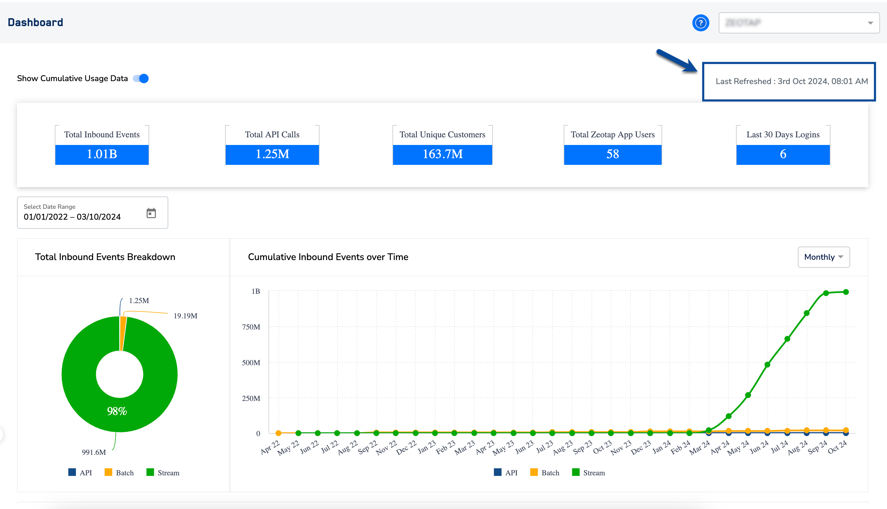 (16-08-2024) You can now see the last refreshed time on your Usage Dashboard, giving you clear visibility into when the data was last updated. The last refreshed time is displayed in your local time zone and refreshes daily, ensuring you always know when the dashboard reflects the most recent data.
