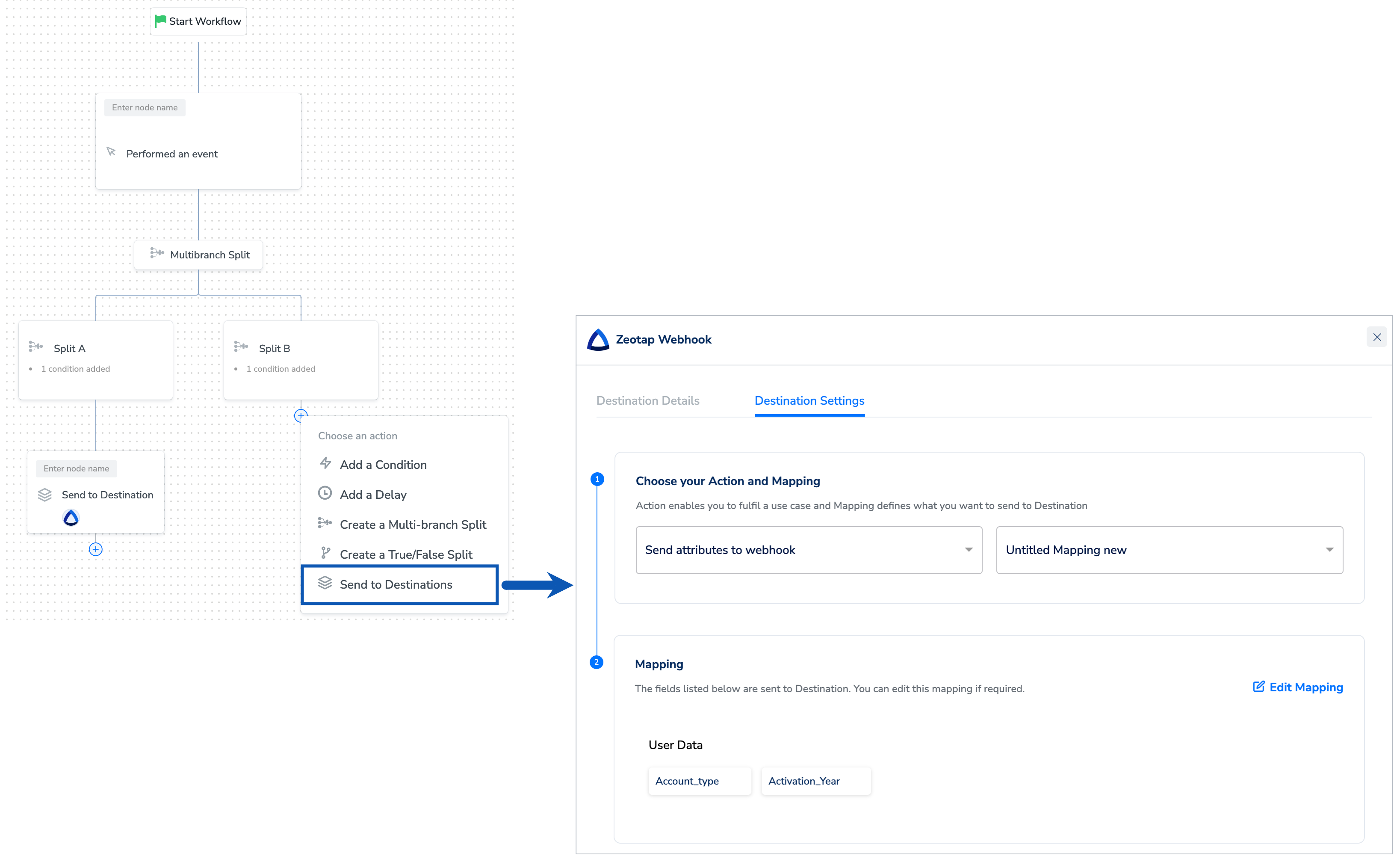 The below enhancements are now available in the Zeotap CDP App.4.1 Enhanced Destination User Experience in Journeys