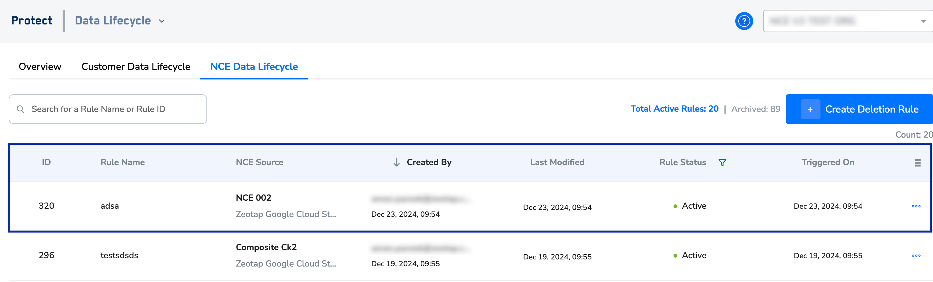 Note:The deletion process is irreversible. Ensure all necessary precautions are taken before triggering the deletion rule.