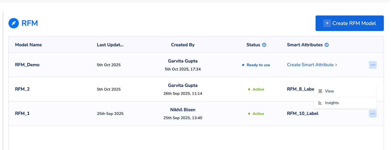 The real power of the RFM model lies in activation. Once the model runs, the cluster label for each user is saved as a smart attribute. You can then navigate to the Audiences module and use this smart attribute to build segments for your marketing campaigns, journeys, and analytics.Use Cases and Examples