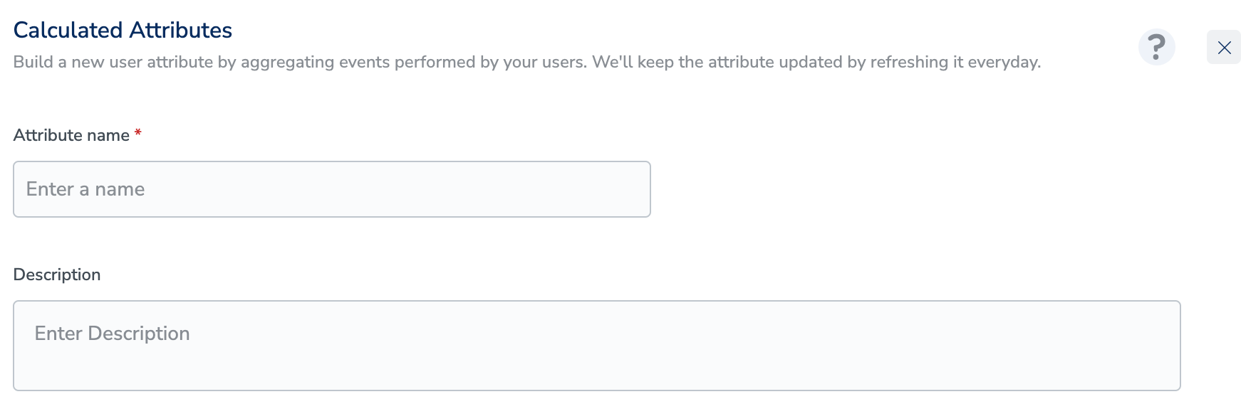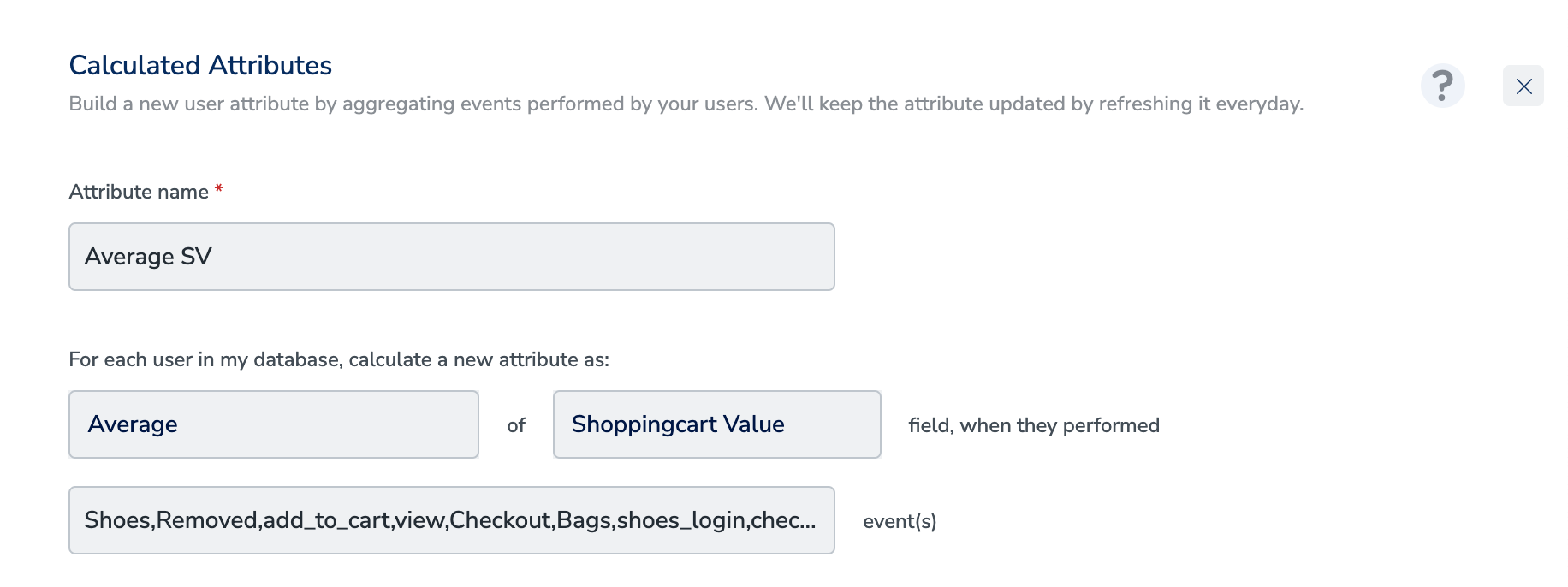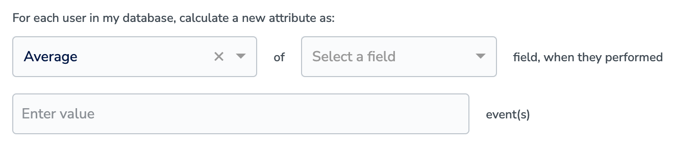 In the Group by field, select one or more attributes (up to 3) to define how the aggregated values should be grouped. Group by helps you break down one calculated attribute into multiple values.Example: Instead of calculating a single “3 months purchase value”, you can group it by Product Category to get the total purchase value separately for each category per user.Only attributes that are at the same level as the selected aggregation field are shown for Group by.