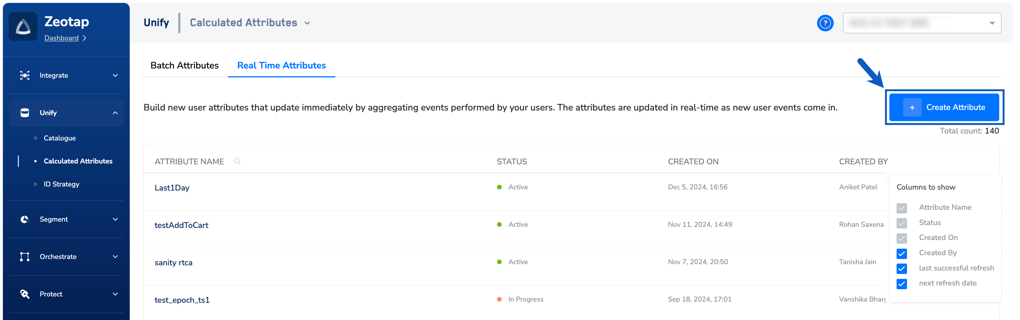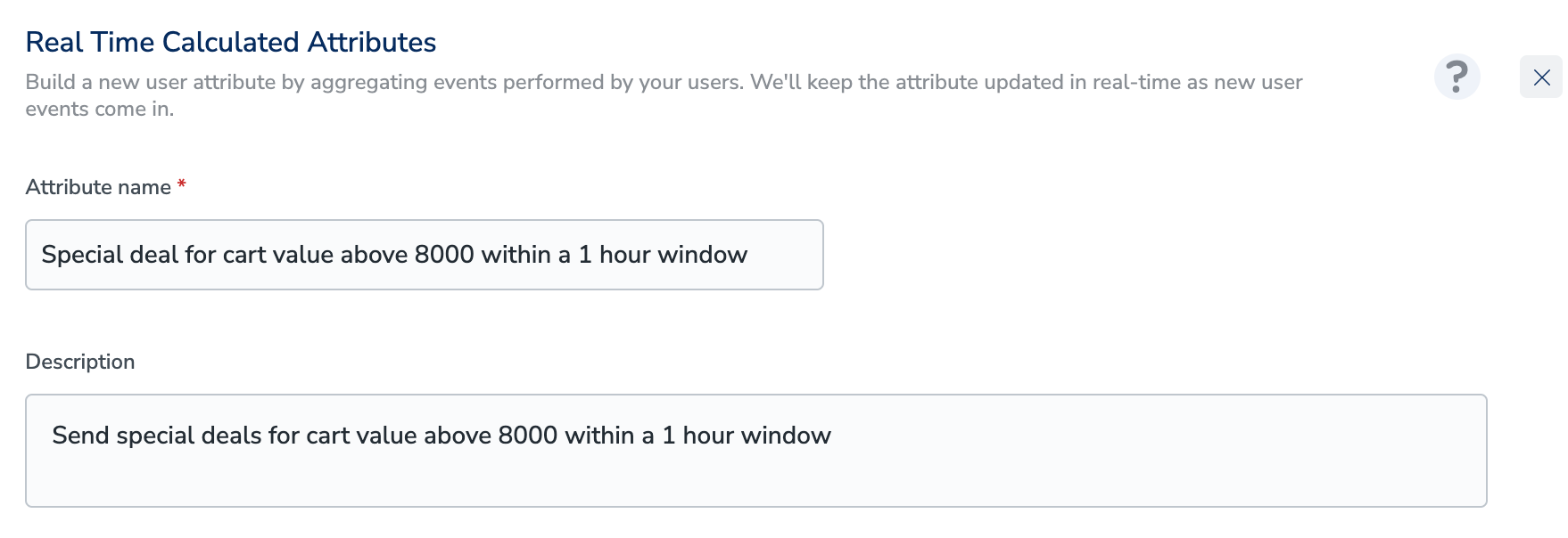 In the Attribute name field, enter a descriptive name to refer to the Real Time Calculated Attribute.