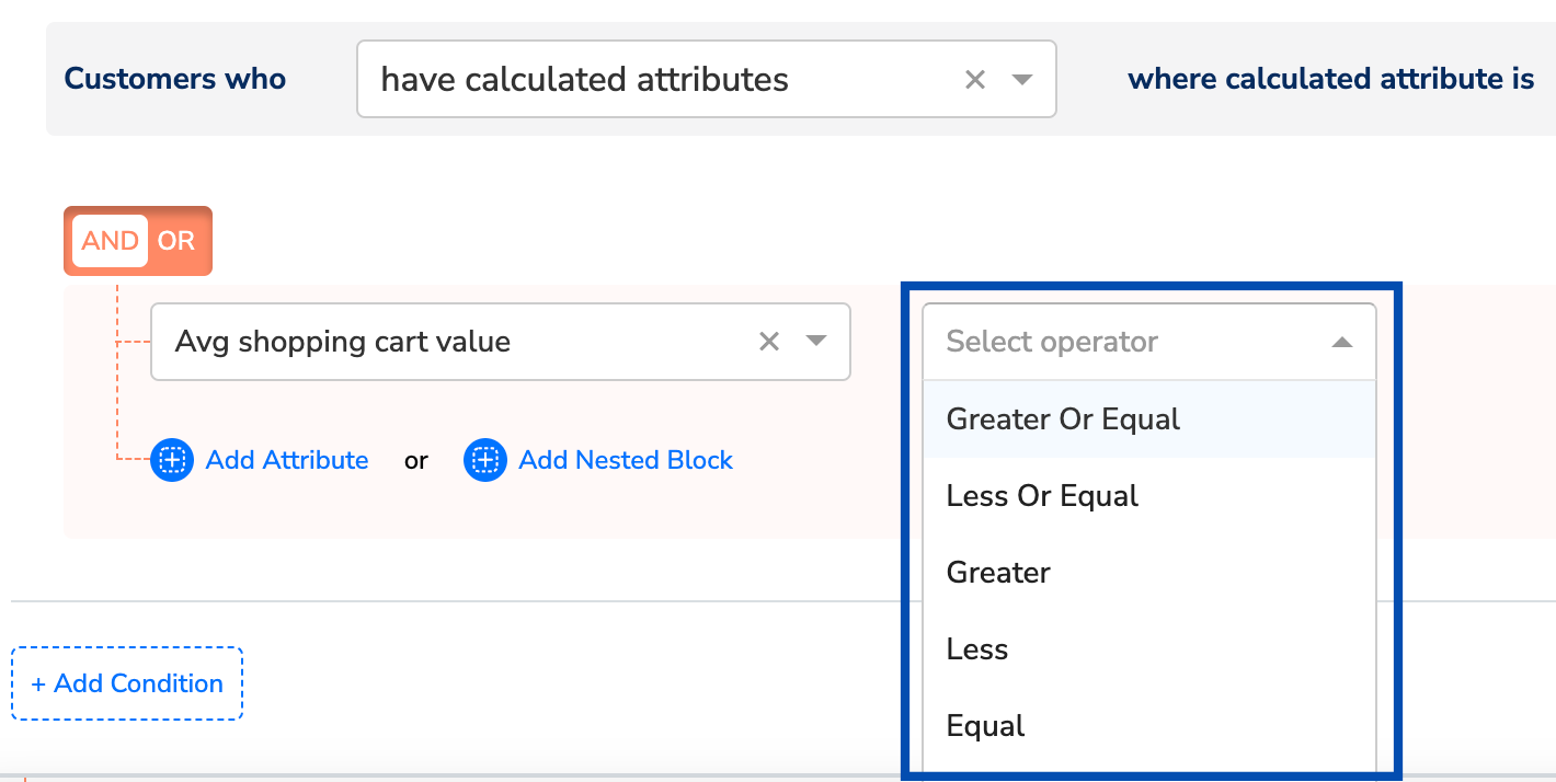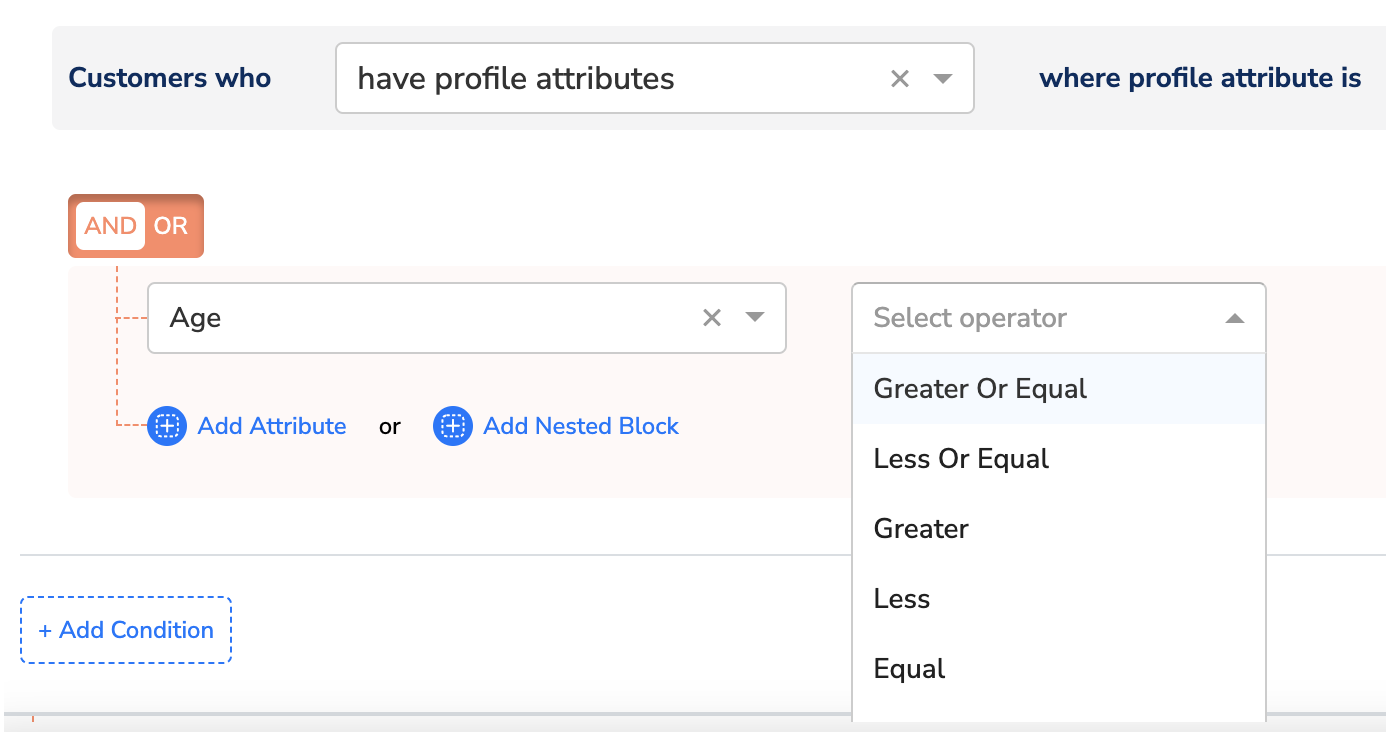 You can use the ‘Integer’ data type in the Zeotap Catalogue to represent whole numbers like Age, Customer ID. Ensure that you map any incoming field of integer values to an Catalogue field of the integer type only. Otherwise, you may encounter ingestion failures for those records or for the file. Note that the operations available in the activation/downstream modules like Audiences and Journeys depend on the data type selected when adding the catalogue field. In the below image, you can see the illustration of an example of a Catalogue field added as an Integer, along with the associated operations available for that specific field in Audience.