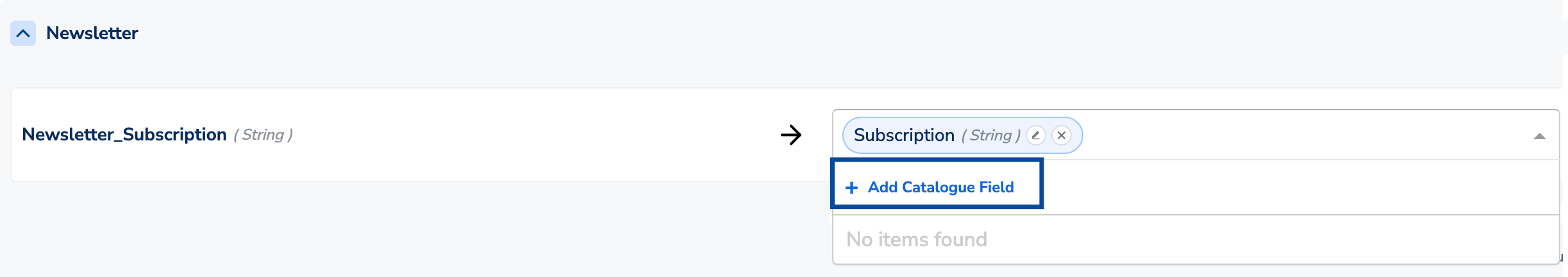 In the mapping screen, you can either select from the existing list of NCE attributes or create a new one by clicking + Add Catalogue Field. For more information about how to create an NCE attribute, refer here.