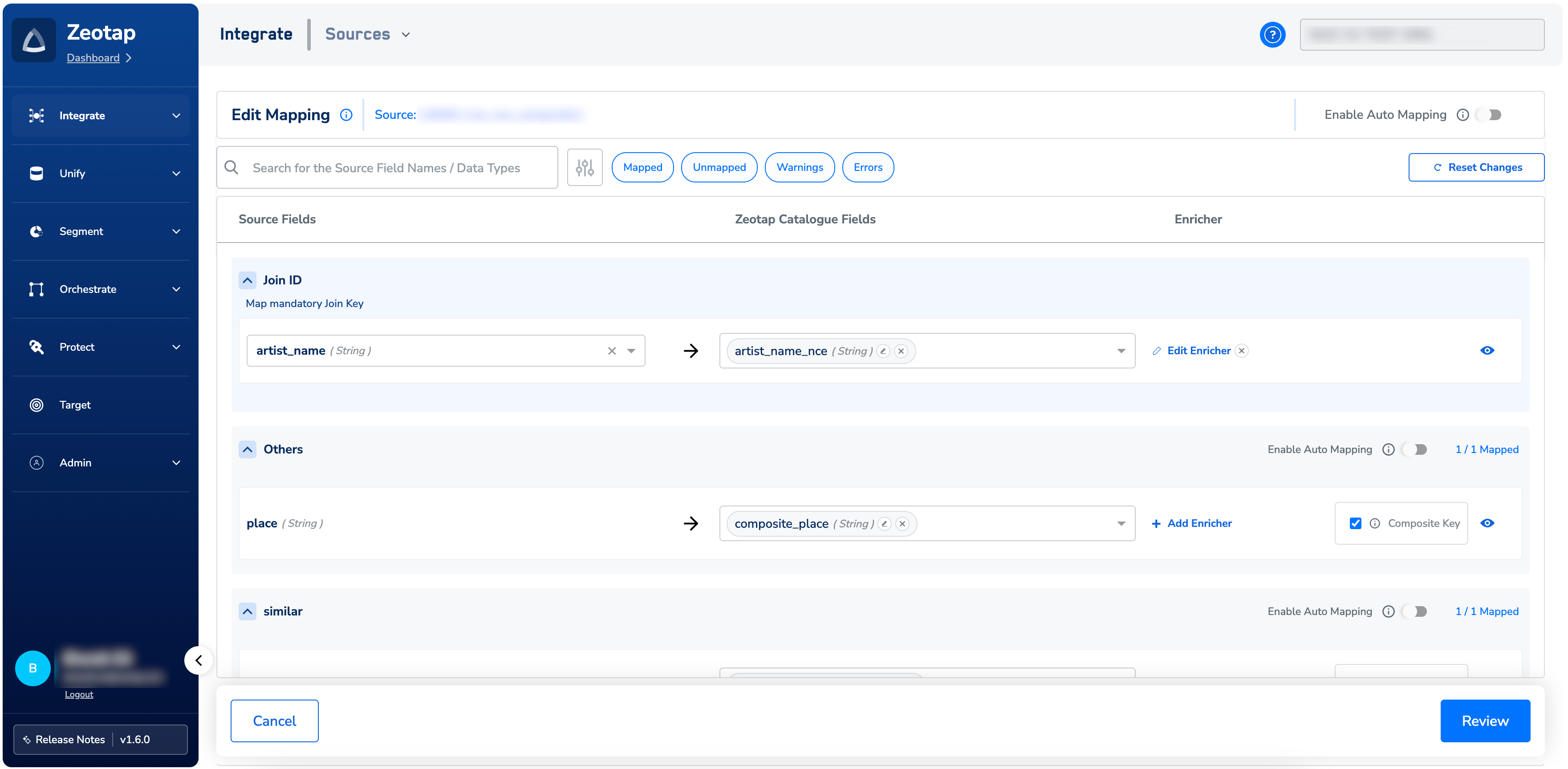 Once the Join Key Enricher is defined, map the remaining NCE fields and click Review.